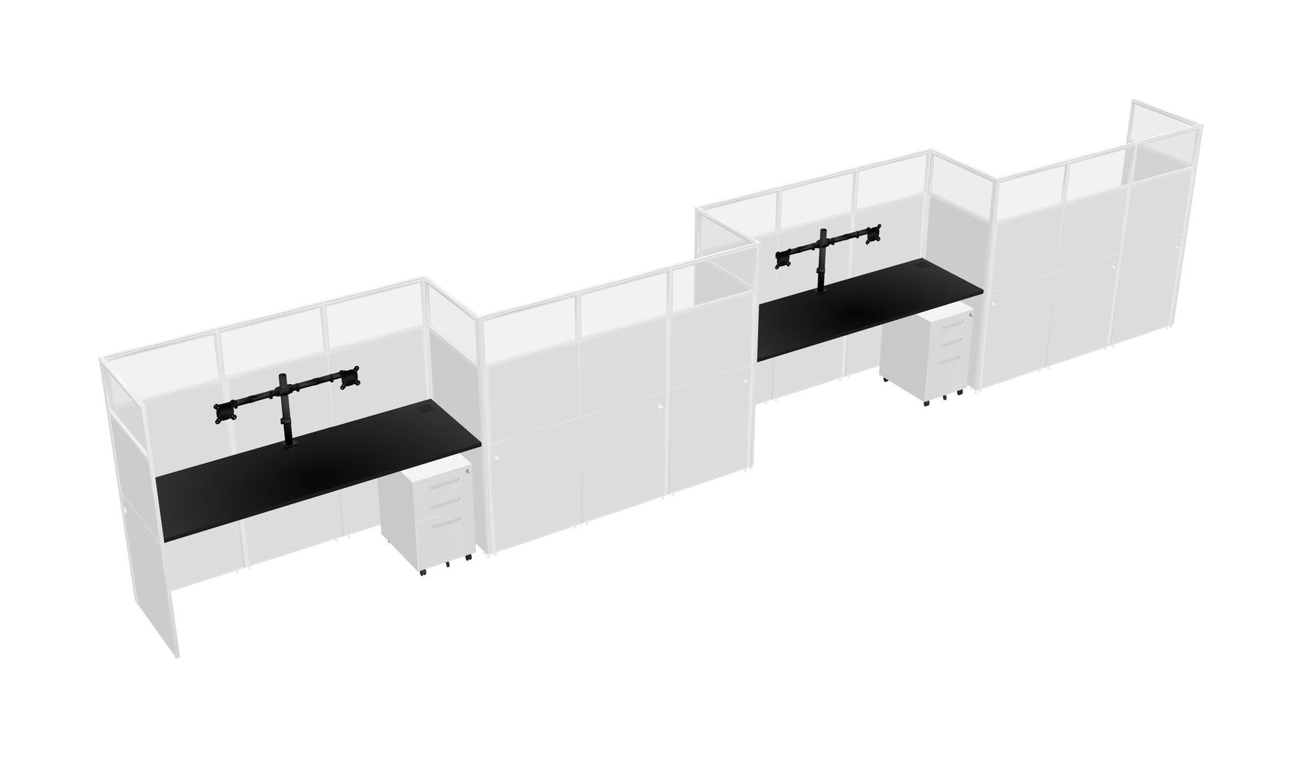 Black Rectangular Cubicle Workstations For 4 - Zigzag Formation + White Metal Mobile Drawers