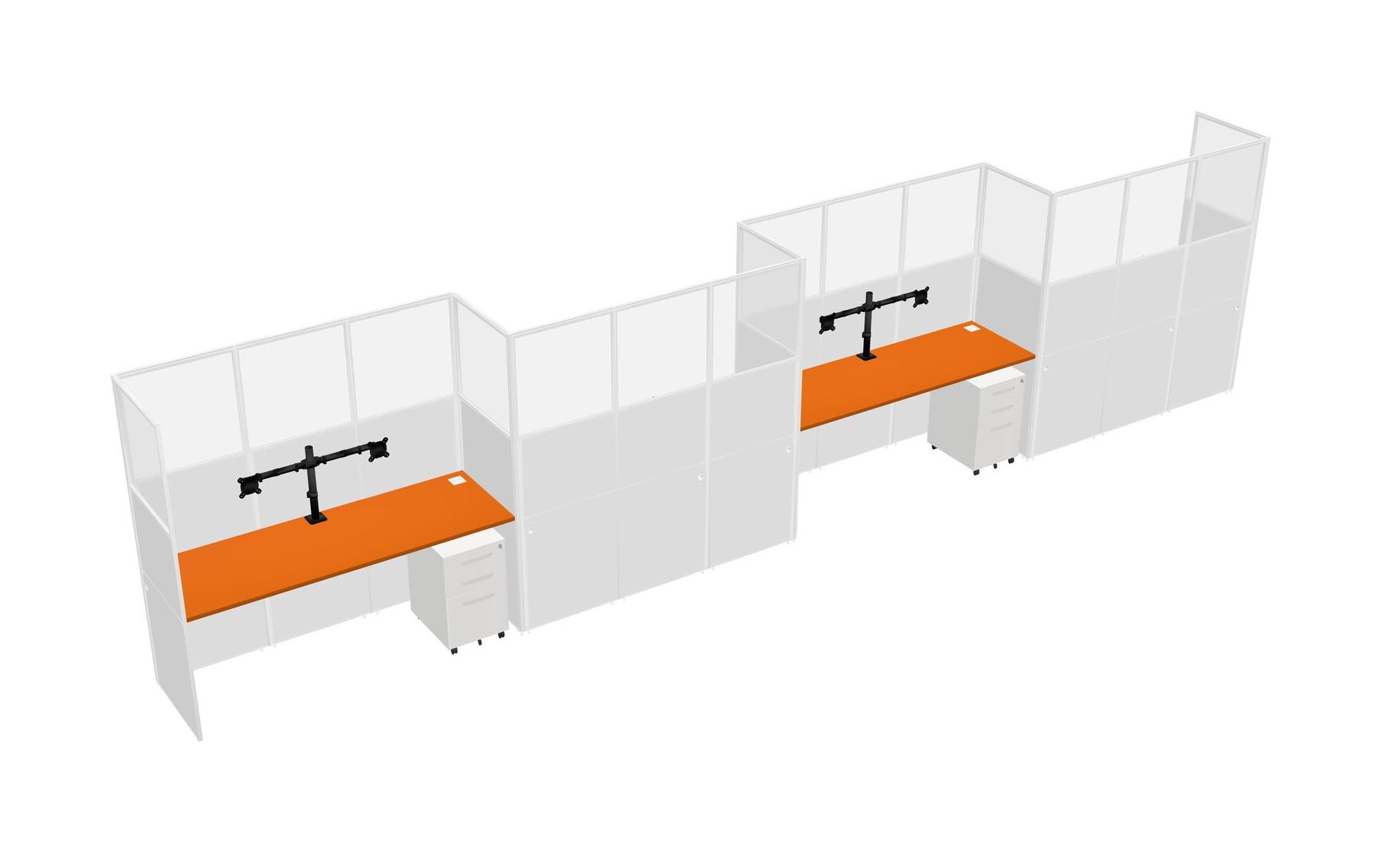 Orange Rectangular Cubicle Workstations For 4 - Zigzag Formation + White Metal Mobile Drawers