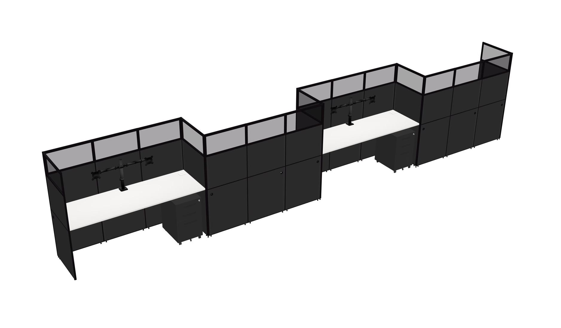 White Rectangular Cubicle Workstations For 4 - Zigzag Formation + Black Metal Mobile Drawers