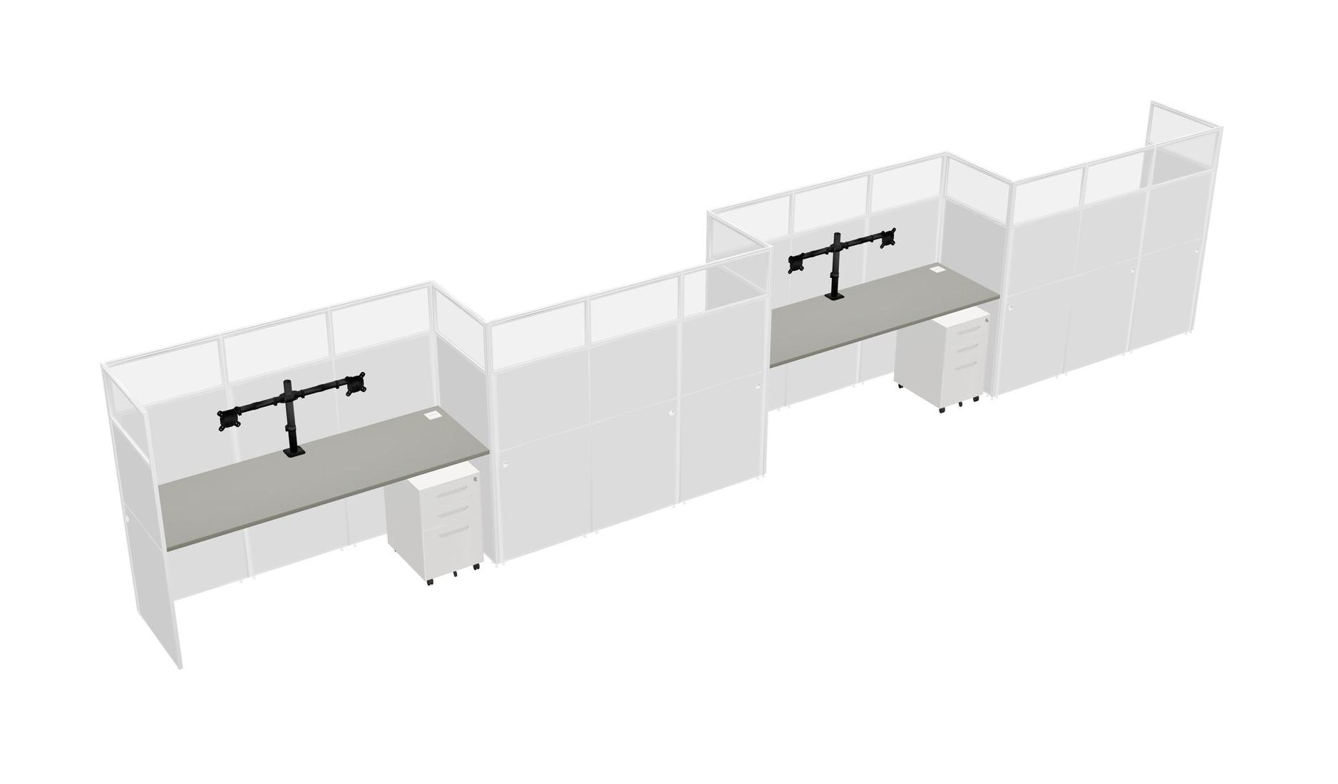 Grey Shadows Rectangular Cubicle Workstations For 4 - Zigzag Formation + White Metal Mobile Drawers