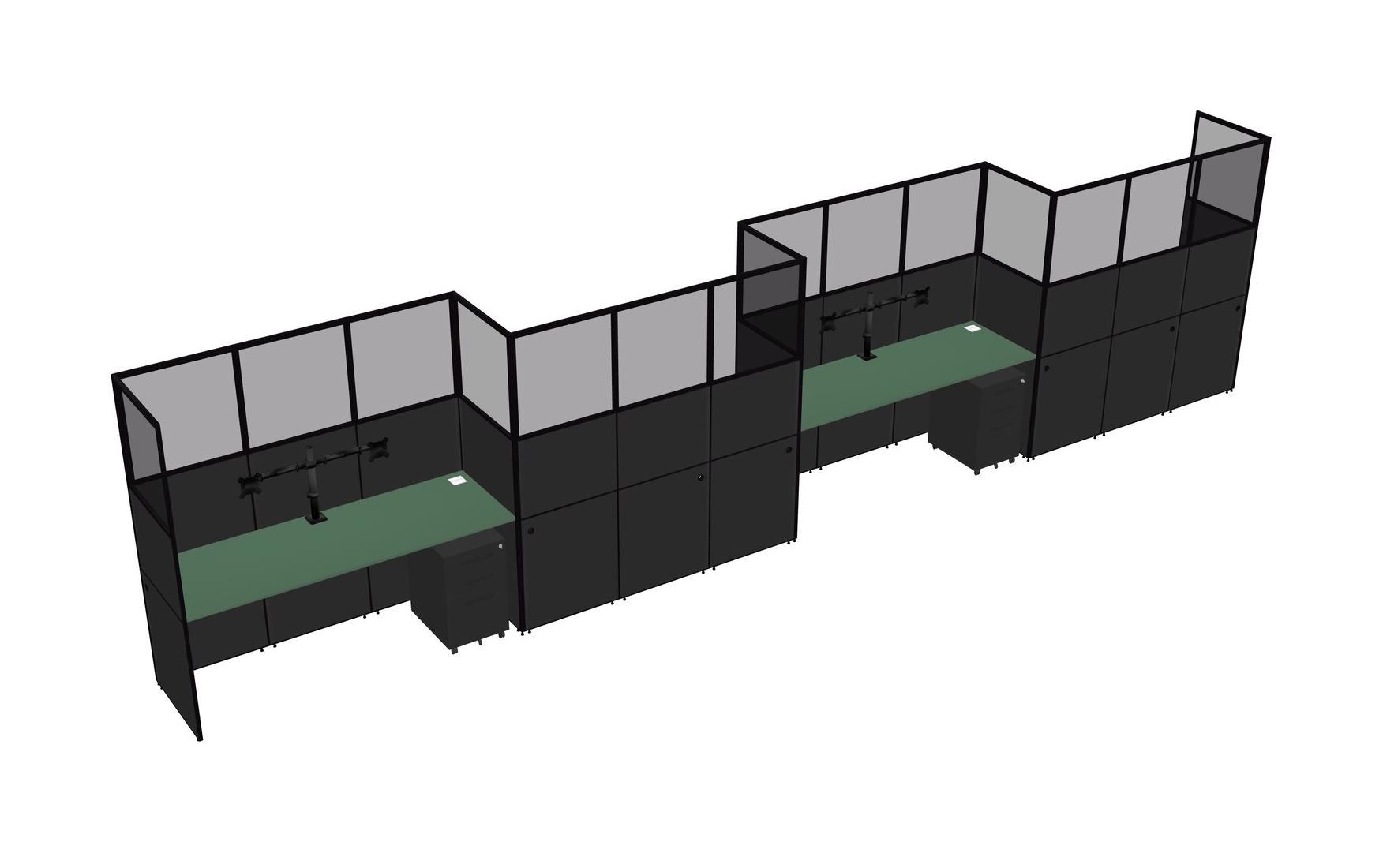 Green Rectangular Cubicle Workstations For 4 - Zigzag Formation + Black Metal Mobile Drawers