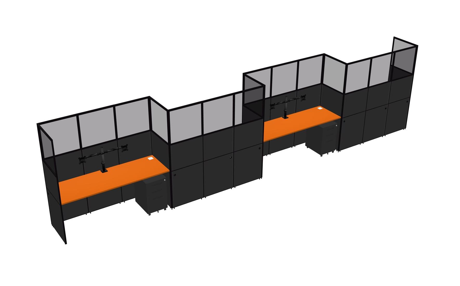 Orange Rectangular Cubicle Workstations For 4 - Zigzag Formation + Black Metal Mobile Drawers