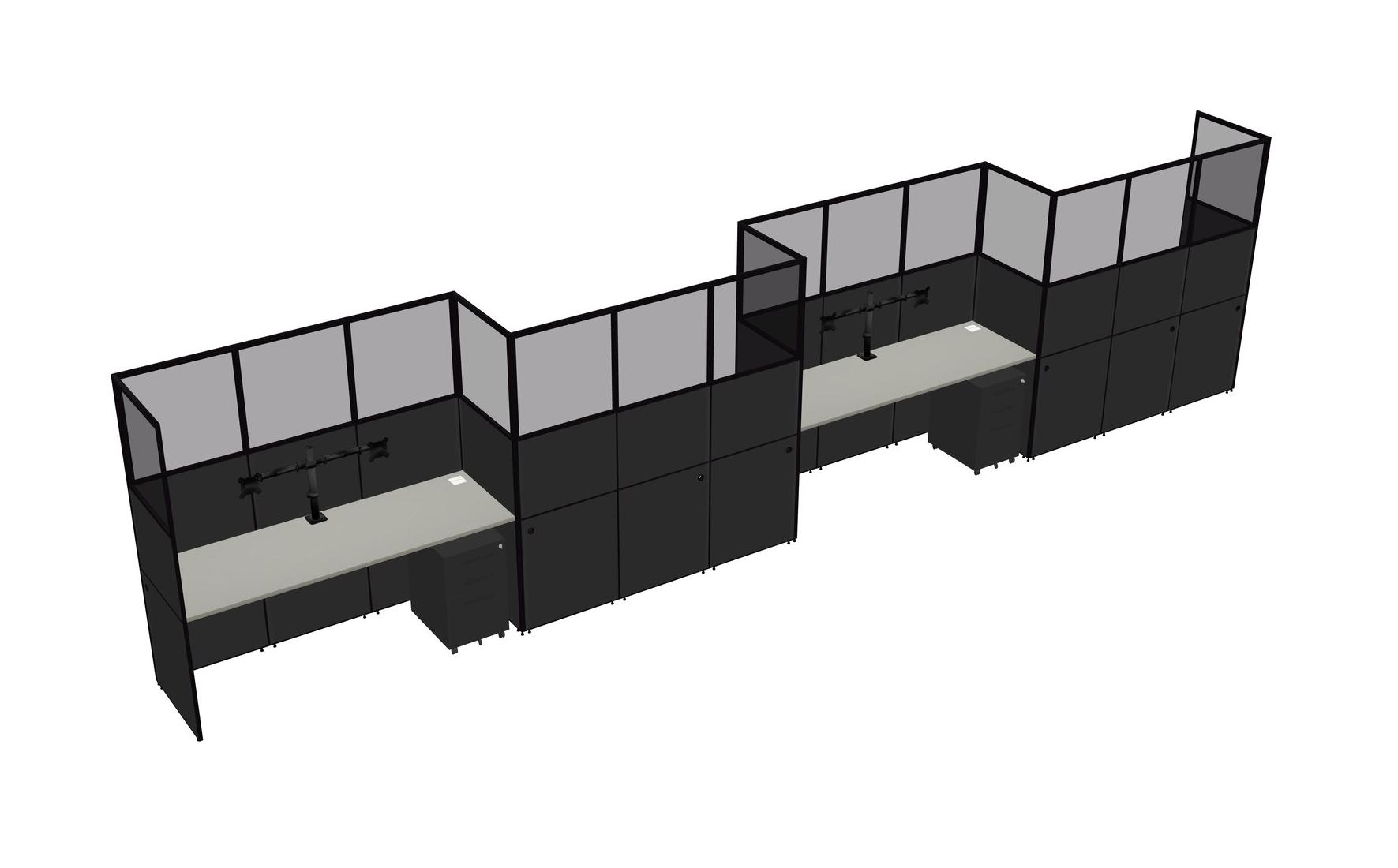 Grey Shadows Rectangular Cubicle Workstations For 4 - Zigzag Formation + Black Metal Mobile Drawers