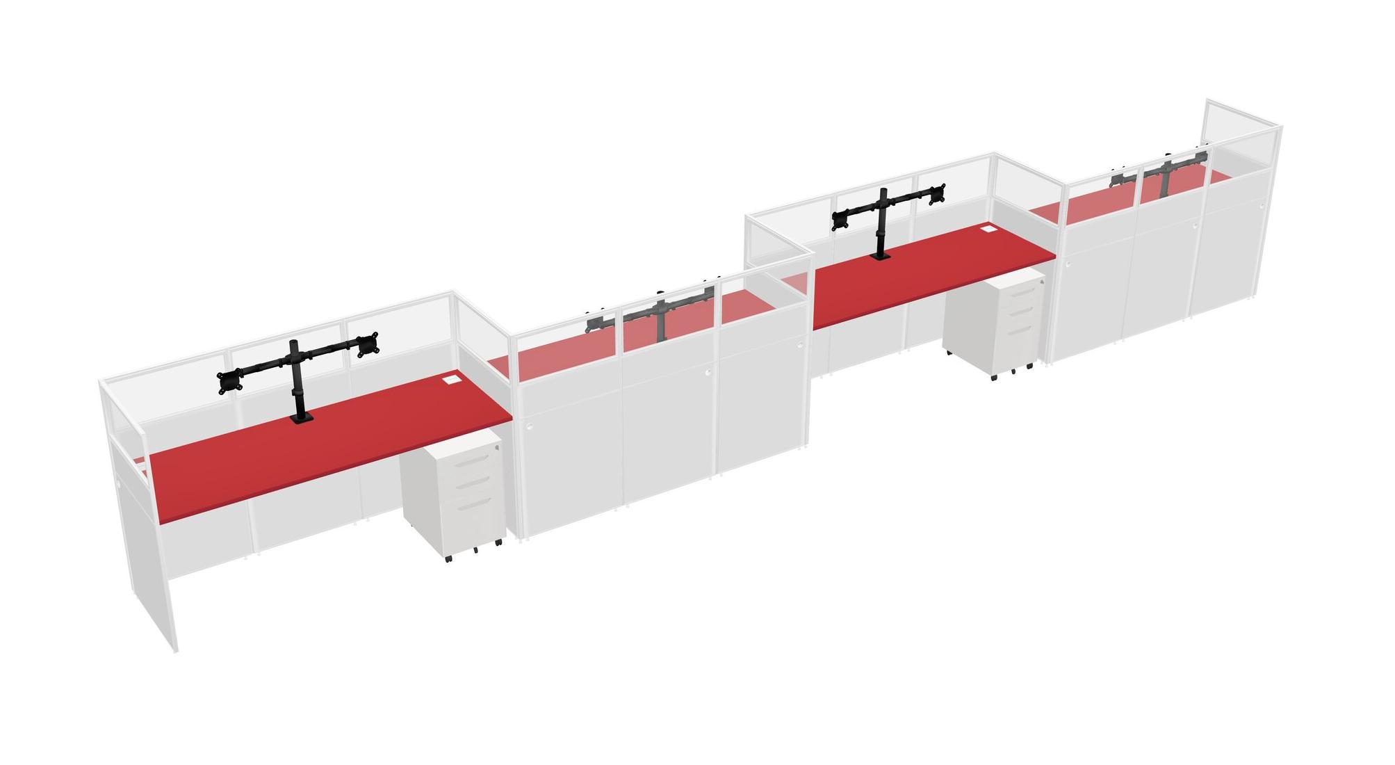 Prism Red Rectangular Cubicle Workstations For 4 - Zigzag Formation + White Metal Mobile Drawers