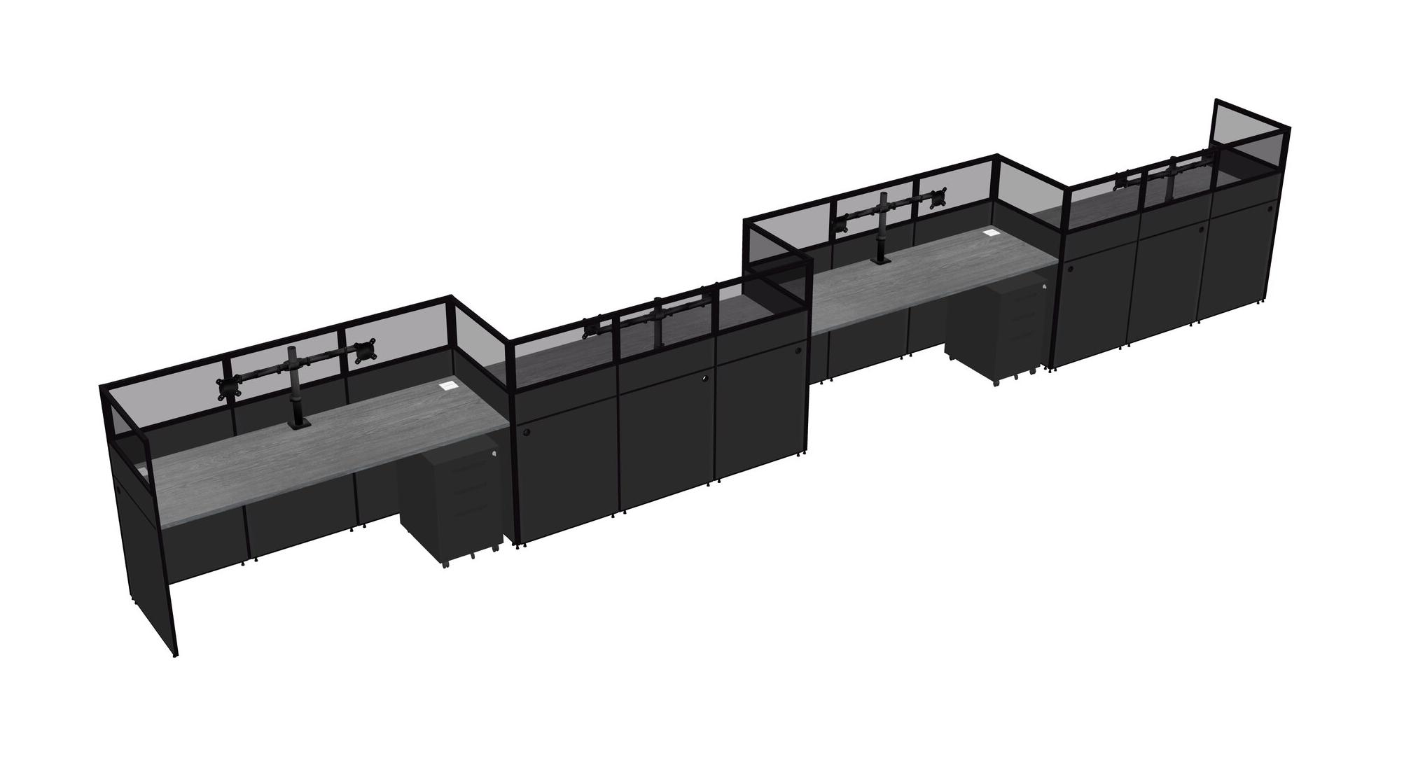 Grey Rectangular Cubicle Workstations For 4 - Zigzag Formation + Black Metal Mobile Drawers
