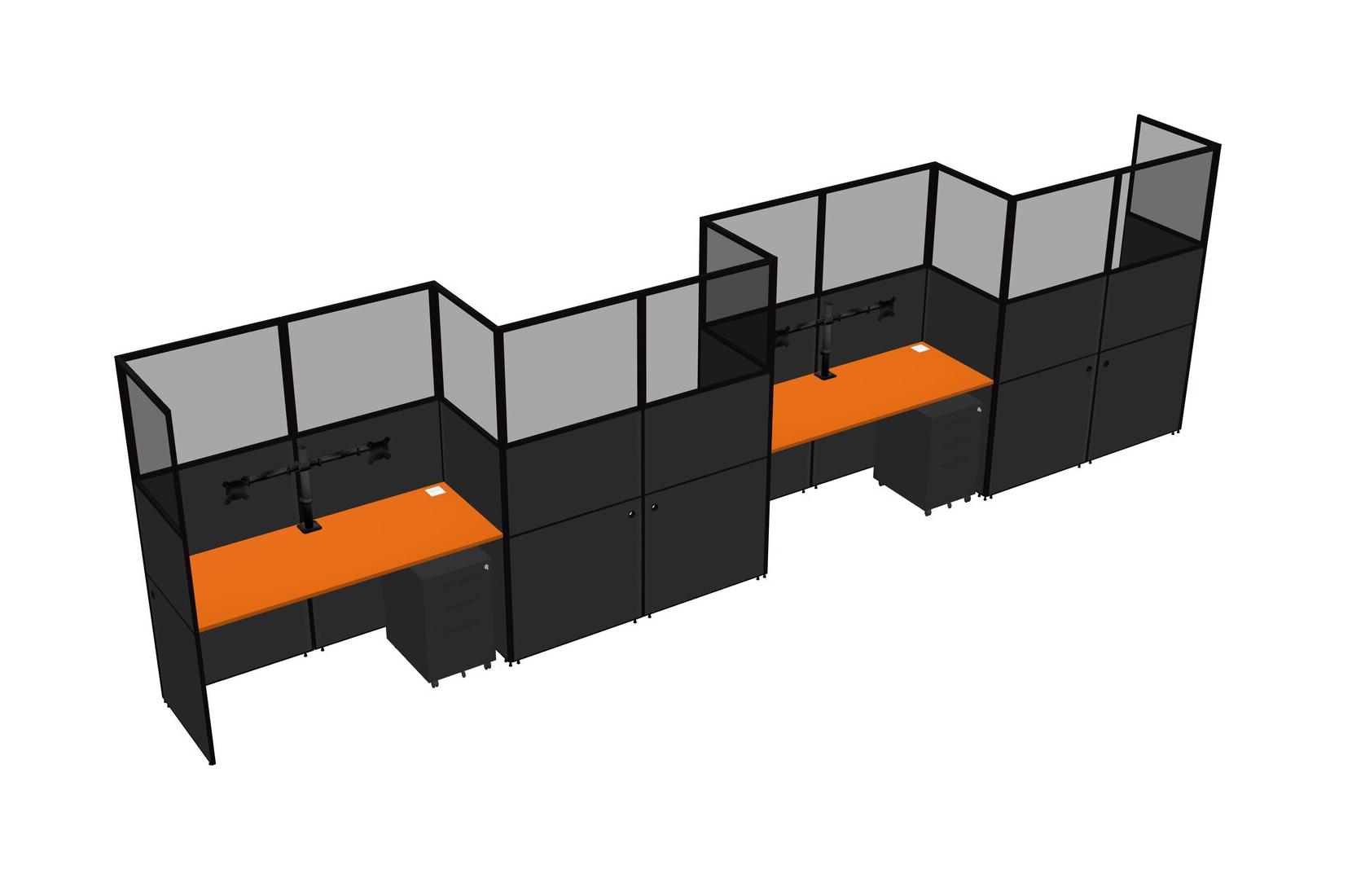 Orange Rectangular Cubicle Workstations For 4 - Zigzag Formation + Black Metal Mobile Drawers