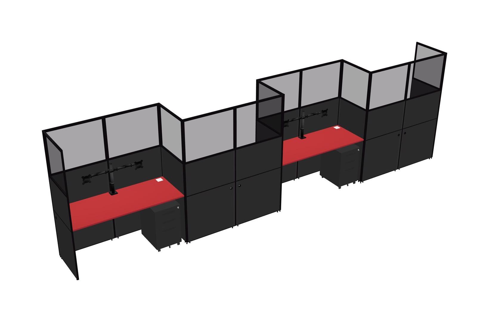 Prism Red Rectangular Cubicle Workstations For 4 - Zigzag Formation + Black Metal Mobile Drawers