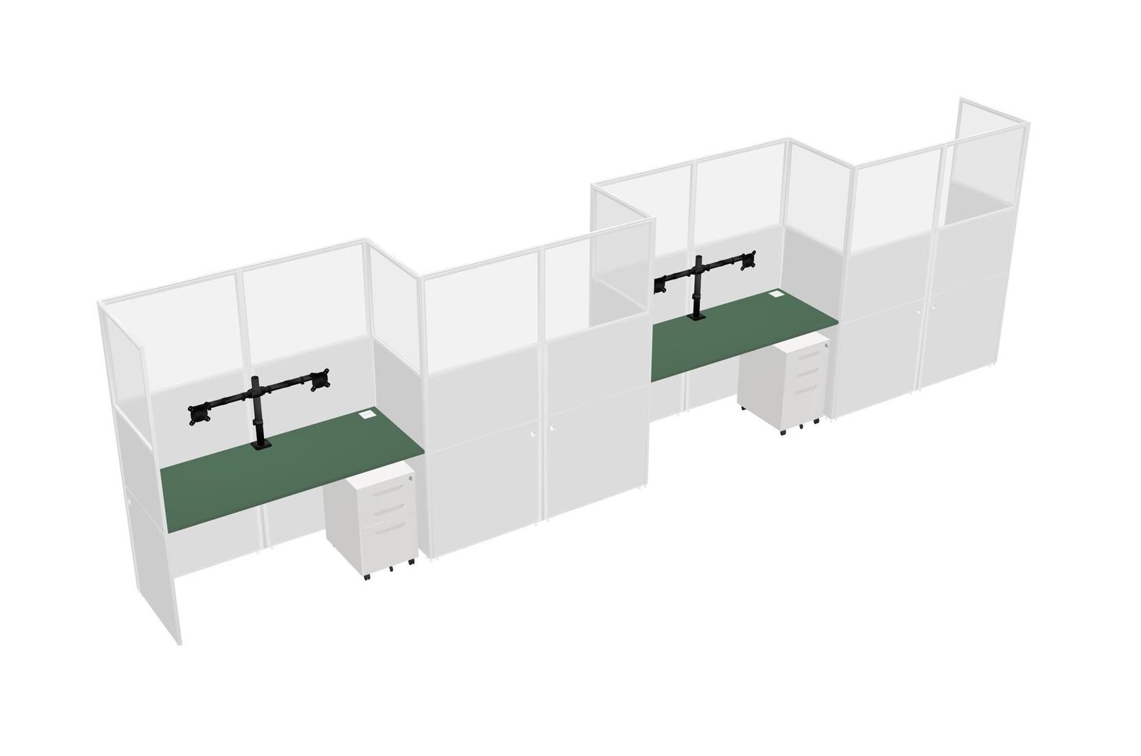Green Rectangular Cubicle Workstations For 4 - Zigzag Formation + White Metal Mobile Drawers