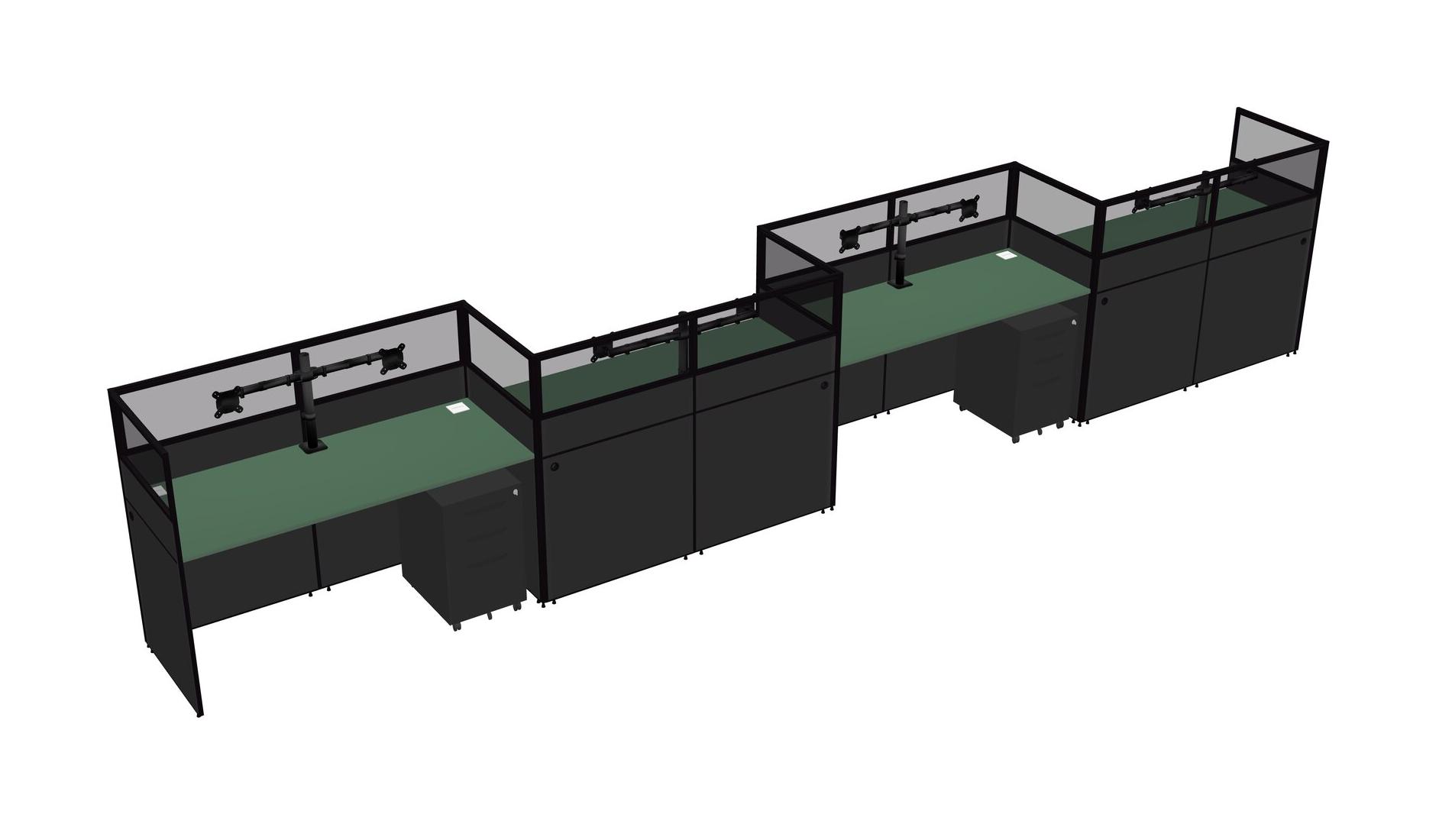 Green Rectangular Cubicle Workstations For 4 - Zigzag Formation + Black Metal Mobile Drawers