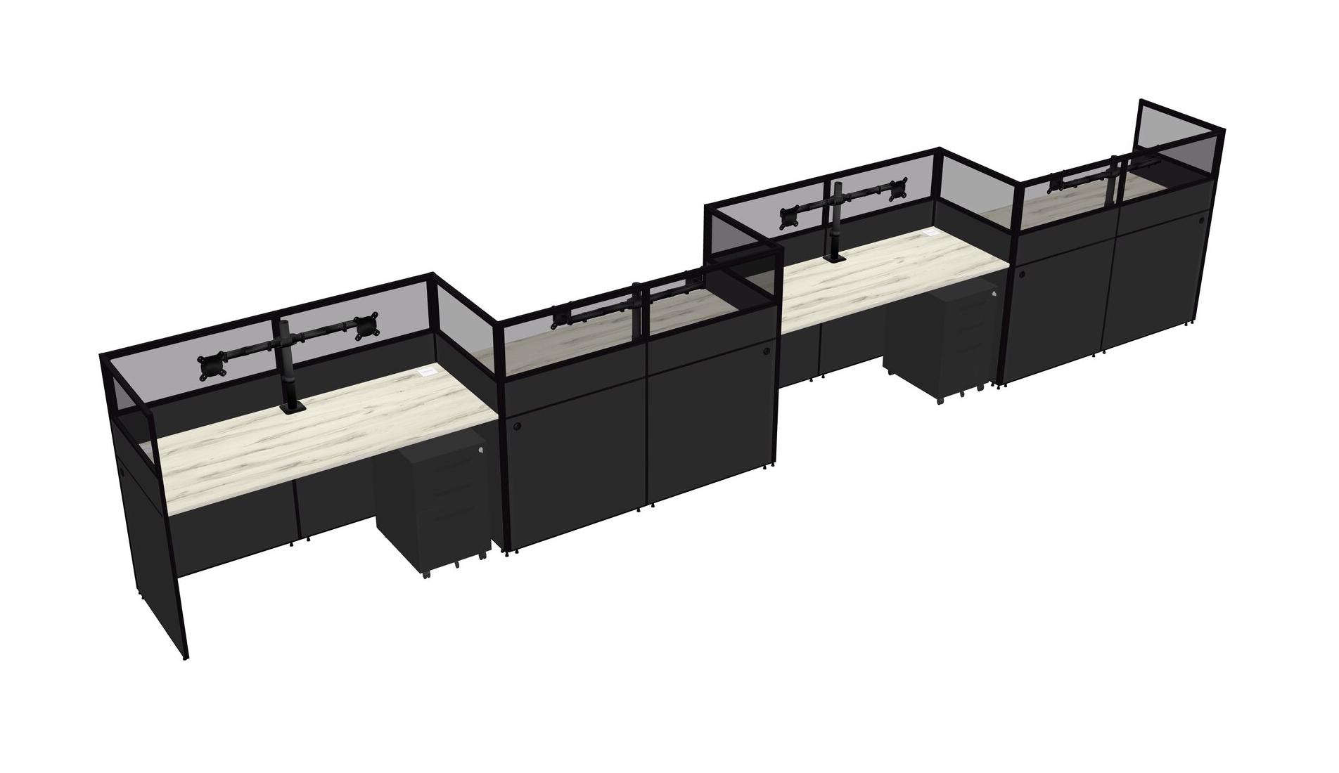 Heinne Holz Rectangular Cubicle Workstations For 4 - Zigzag Formation + Black Metal Mobile Drawers