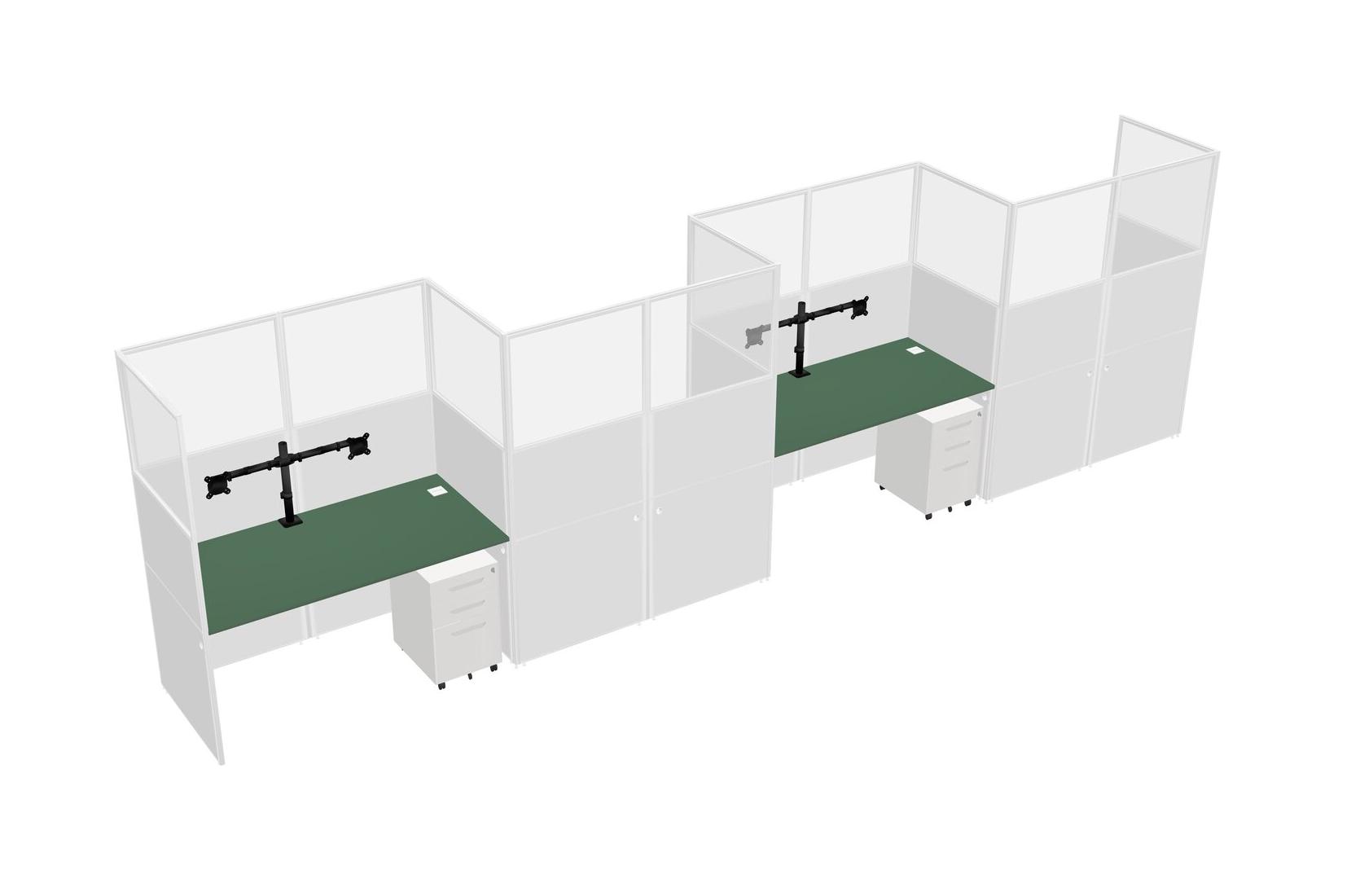 Green Rectangular Cubicle Workstations For 4 - Zigzag Formation + White Metal Mobile Drawers
