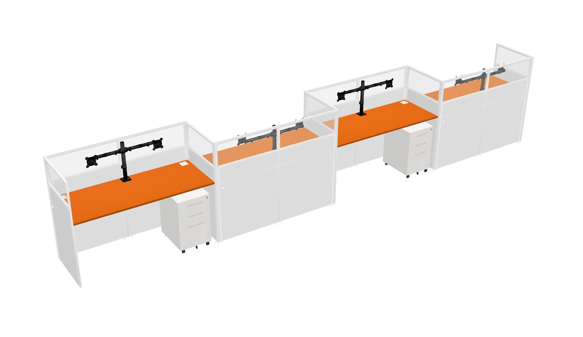Orange Rectangular Cubicle Workstations For 4 - Zigzag Formation + White Metal Mobile Drawers