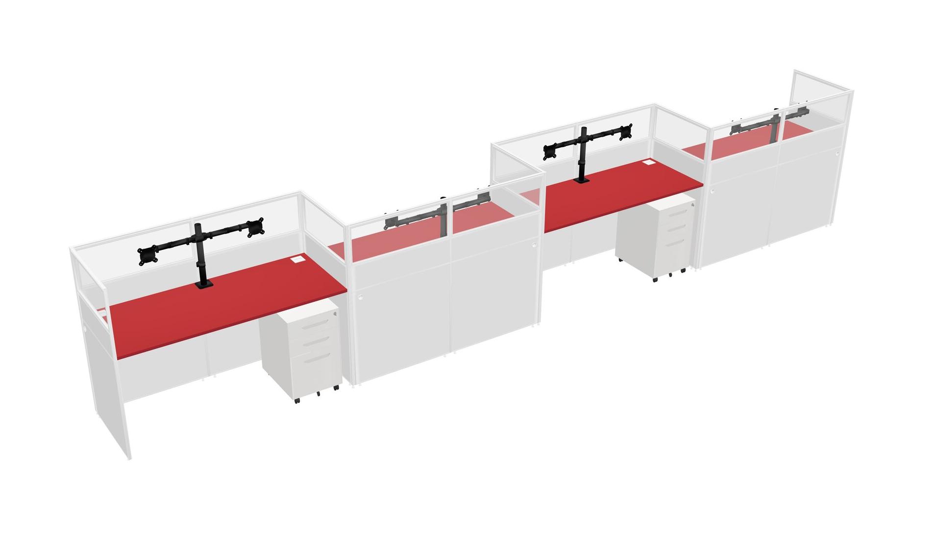 Prism Red Rectangular Cubicle Workstations For 4 - Zigzag Formation + White Metal Mobile Drawers