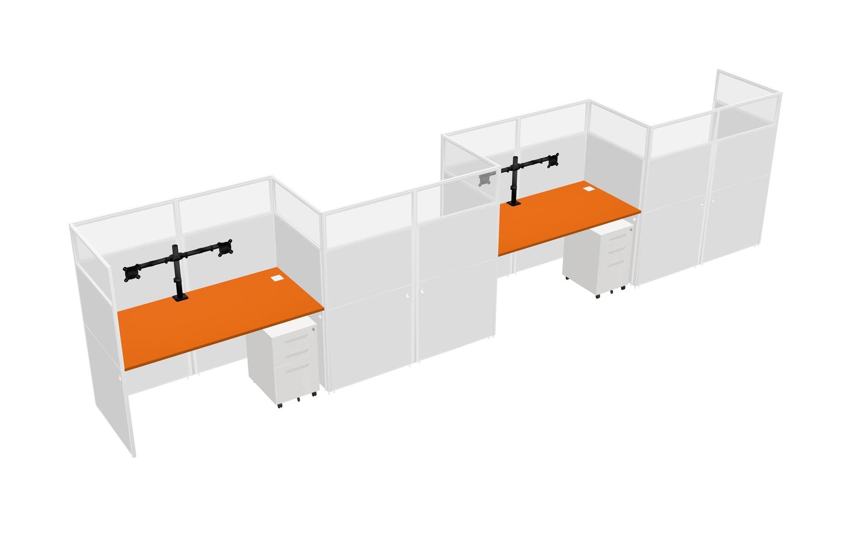 Orange Rectangular Cubicle Workstations For 4 - Zigzag Formation + White Metal Mobile Drawers