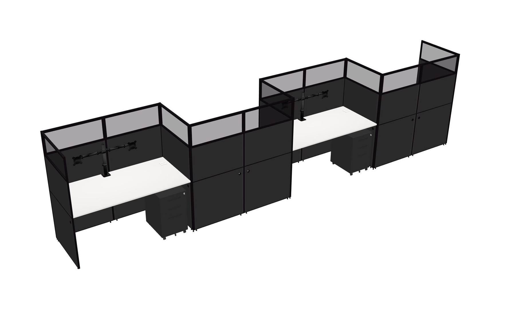 White Rectangular Cubicle Workstations For 4 - Zigzag Formation + Black Metal Mobile Drawers