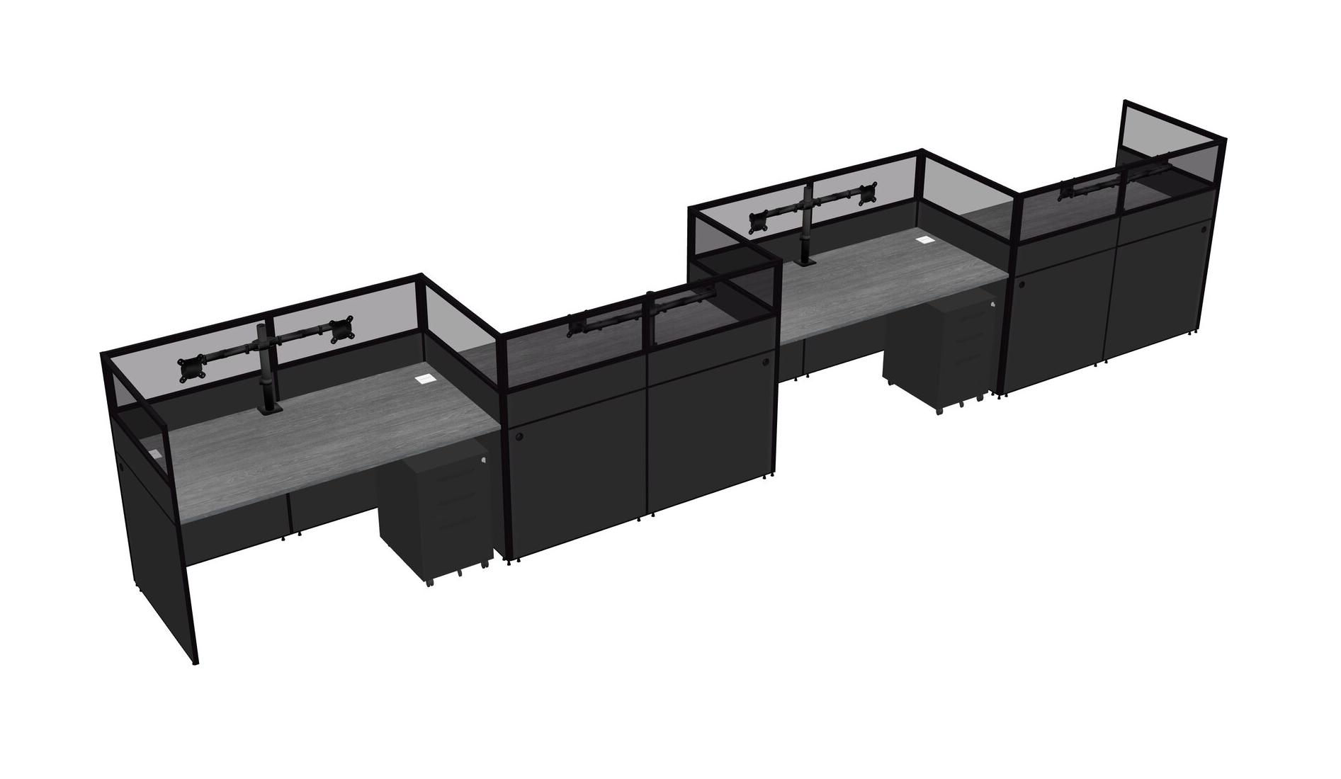 Grey Rectangular Cubicle Workstations For 4 - Zigzag Formation + Black Metal Mobile Drawers