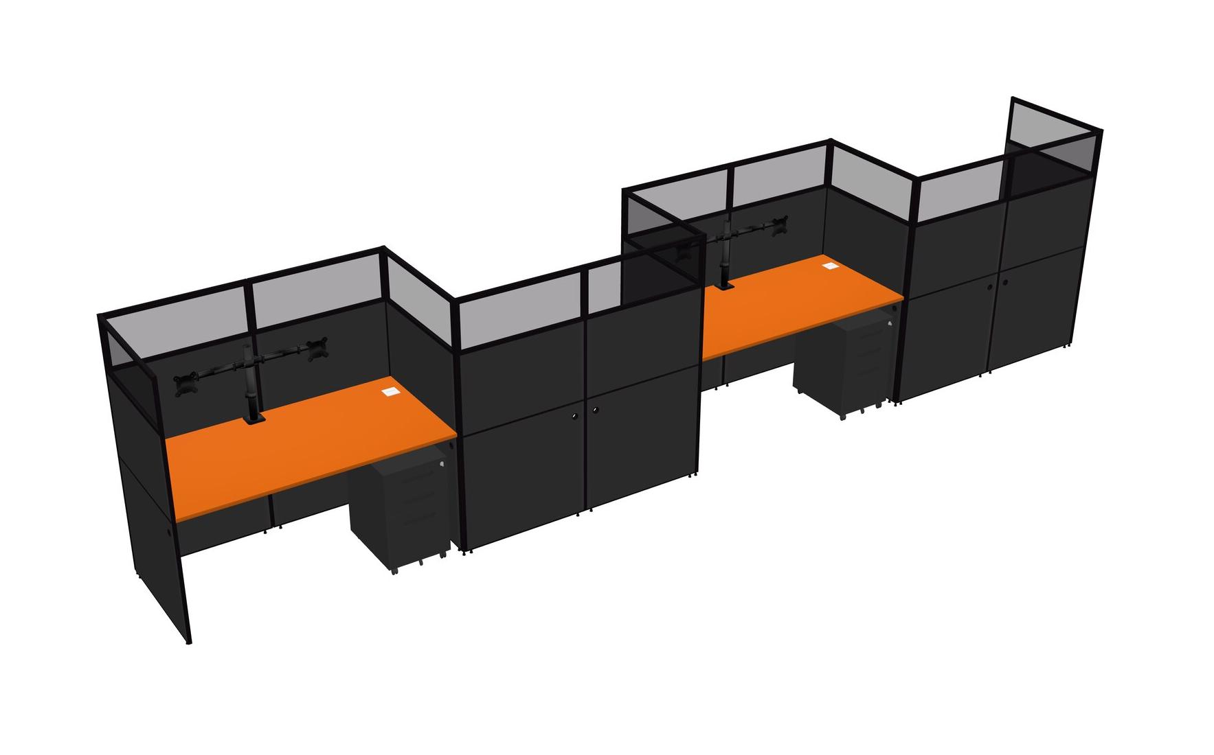 Orange Rectangular Cubicle Workstations For 4 - Zigzag Formation + Black Metal Mobile Drawers