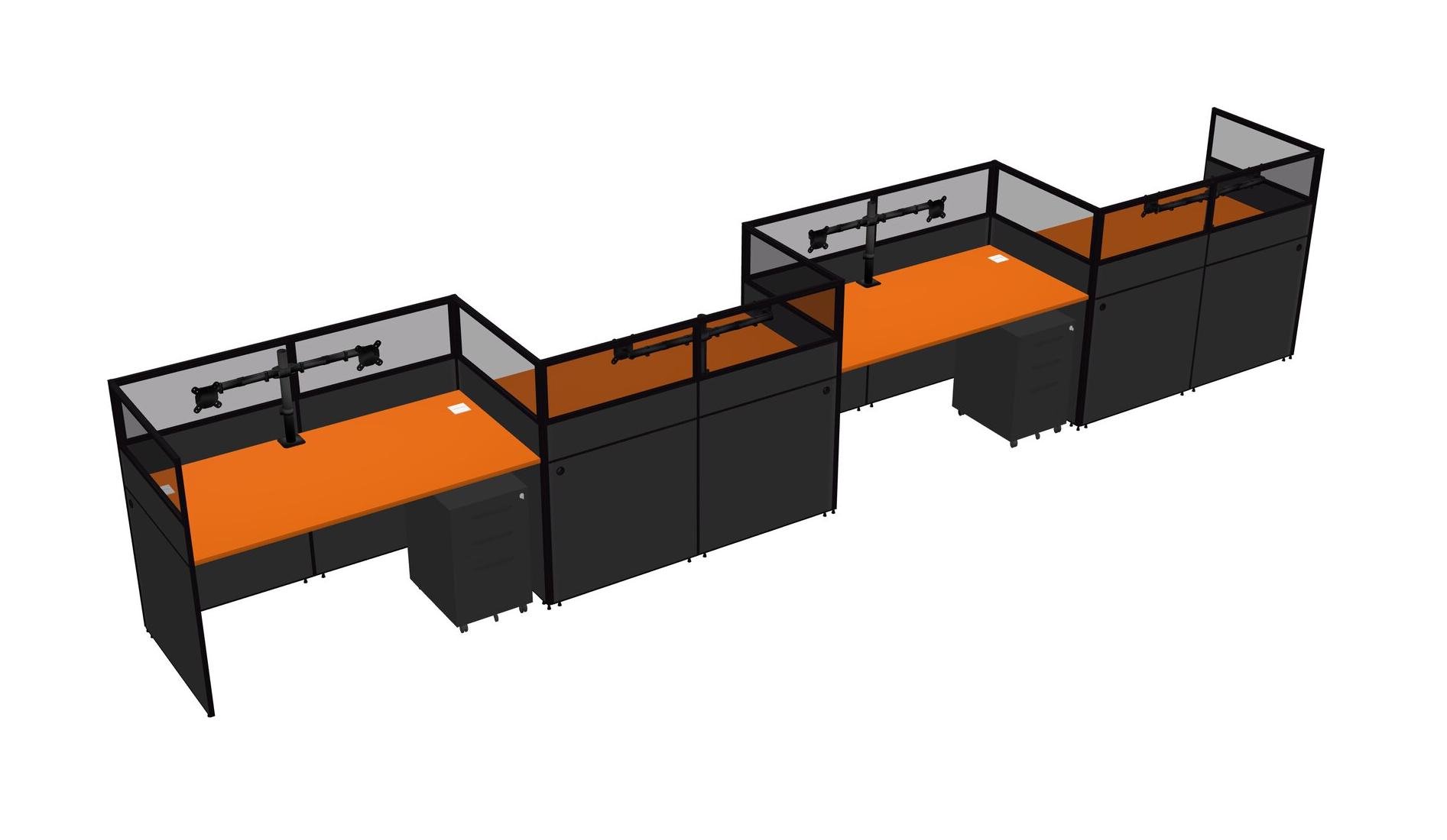 Orange Rectangular Cubicle Workstations For 4 - Zigzag Formation + Black Metal Mobile Drawers