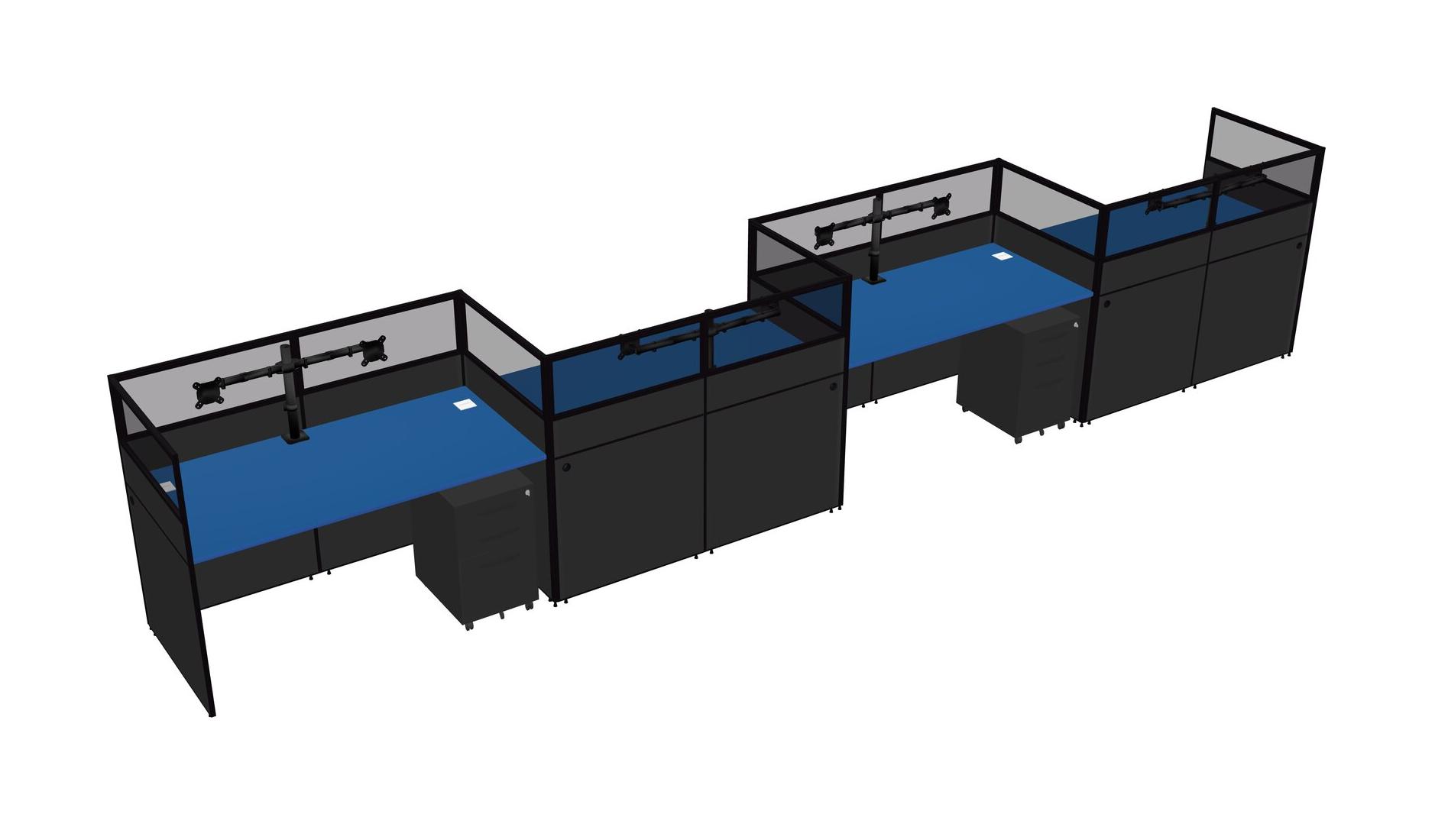 Prism Blue Rectangular Cubicle Workstations For 4 - Zigzag Formation + Black Metal Mobile Drawers