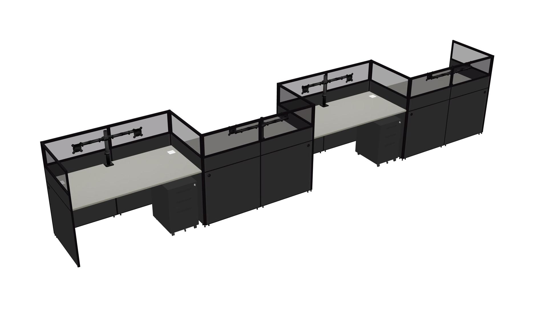 Grey Shadows Rectangular Cubicle Workstations For 4 - Zigzag Formation + Black Metal Mobile Drawers