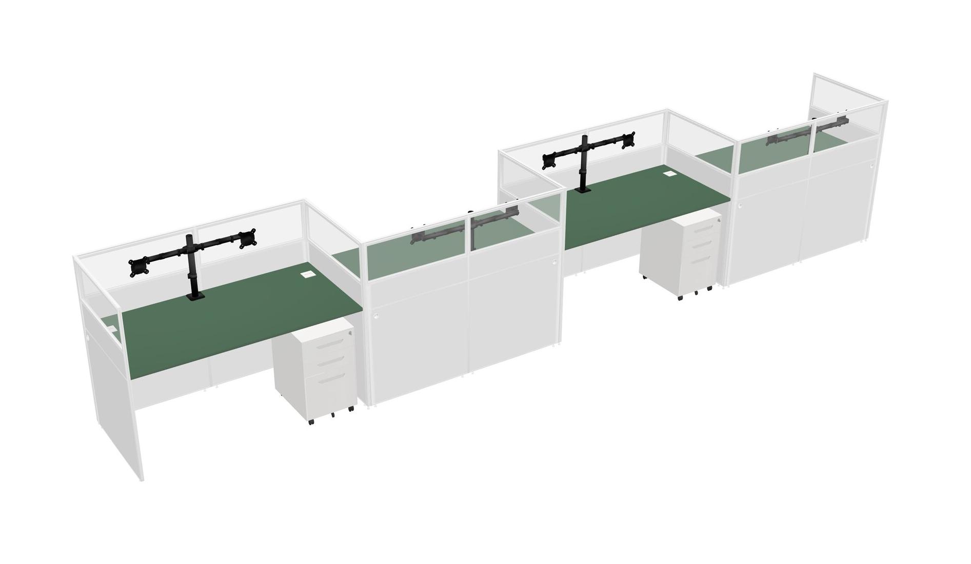 Green Rectangular Cubicle Workstations For 4 - Zigzag Formation + White Metal Mobile Drawers