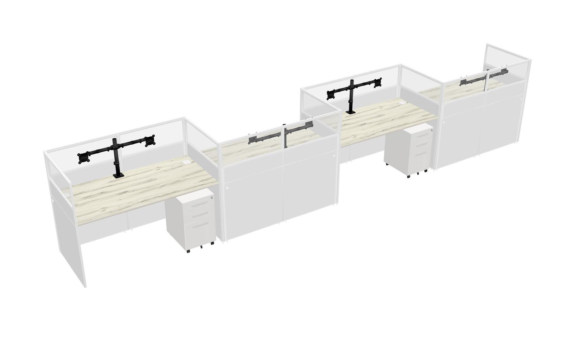 Heinne Holz Rectangular Cubicle Workstations For 4 - Zigzag Formation + White Metal Mobile Drawers