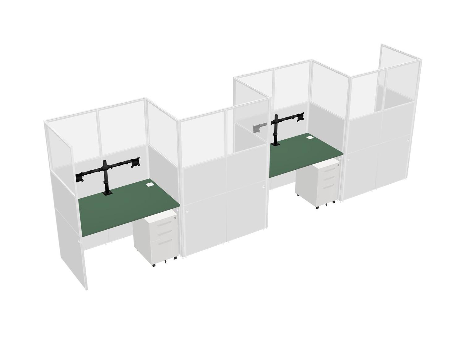 Green Rectangular Cubicle Workstations For 4 - Zigzag Formation + White Metal Mobile Drawers