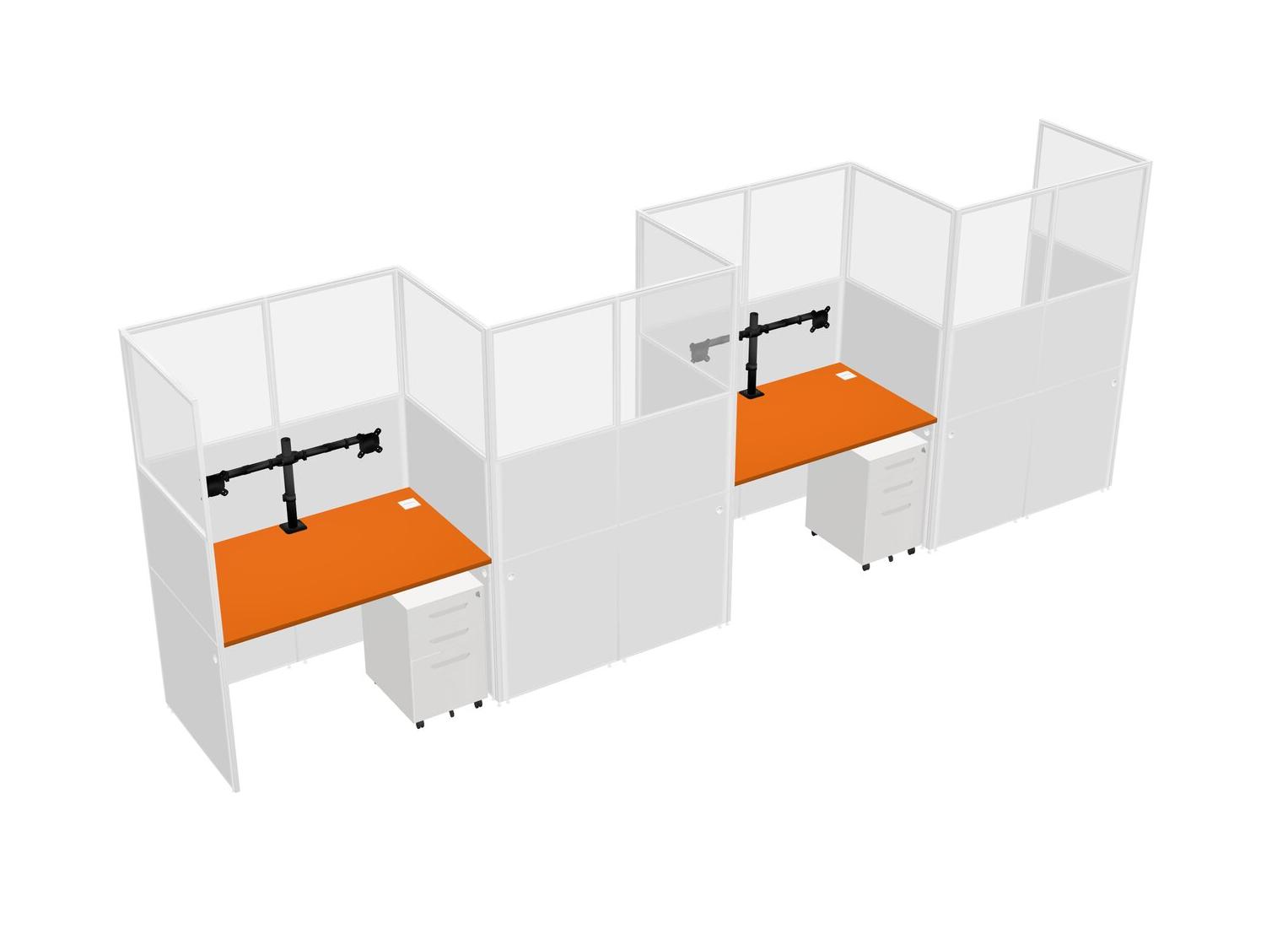 Orange Rectangular Cubicle Workstations For 4 - Zigzag Formation + White Metal Mobile Drawers