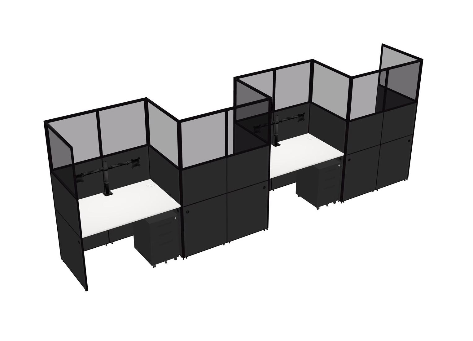 White Rectangular Cubicle Workstations For 4 - Zigzag Formation + Black Metal Mobile Drawers