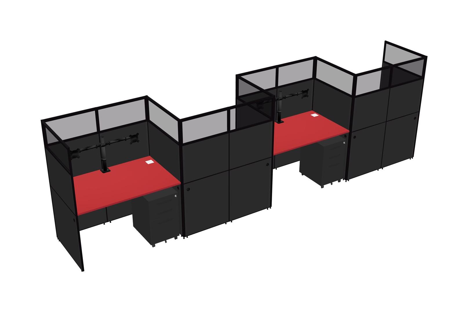 Prism Red Rectangular Cubicle Workstations For 4 - Zigzag Formation + Black Metal Mobile Drawers