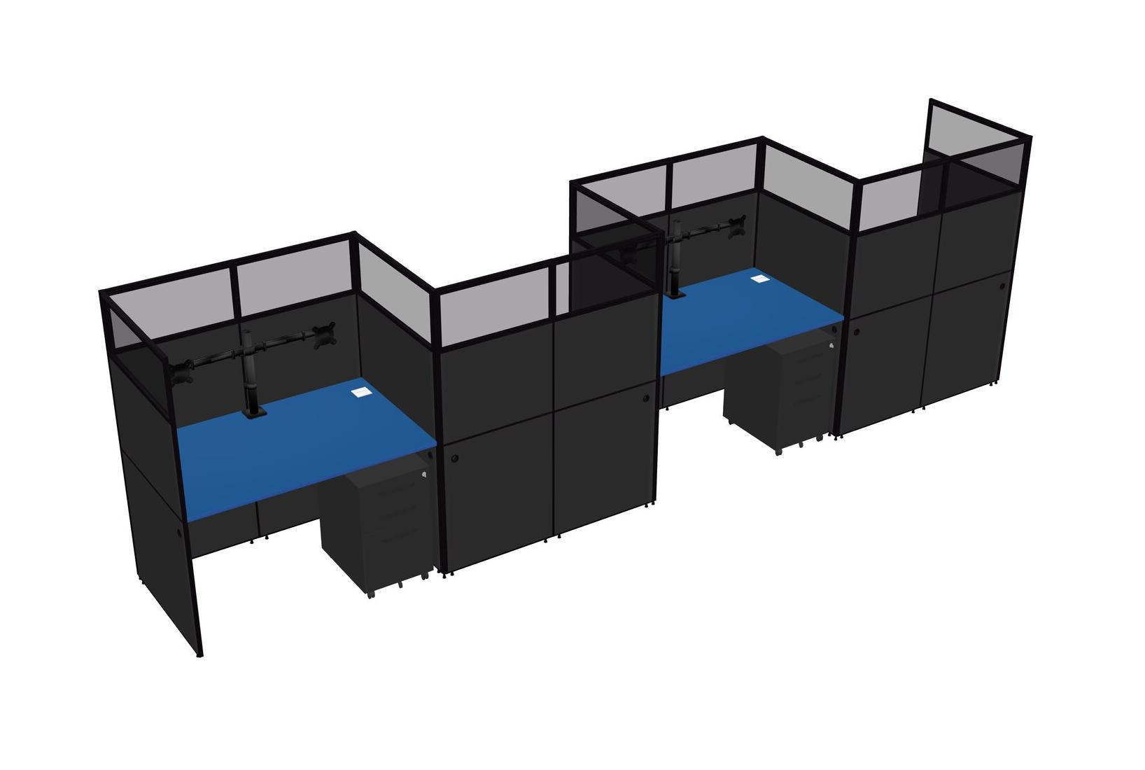 Prism Blue Rectangular Cubicle Workstations For 4 - Zigzag Formation + Black Metal Mobile Drawers