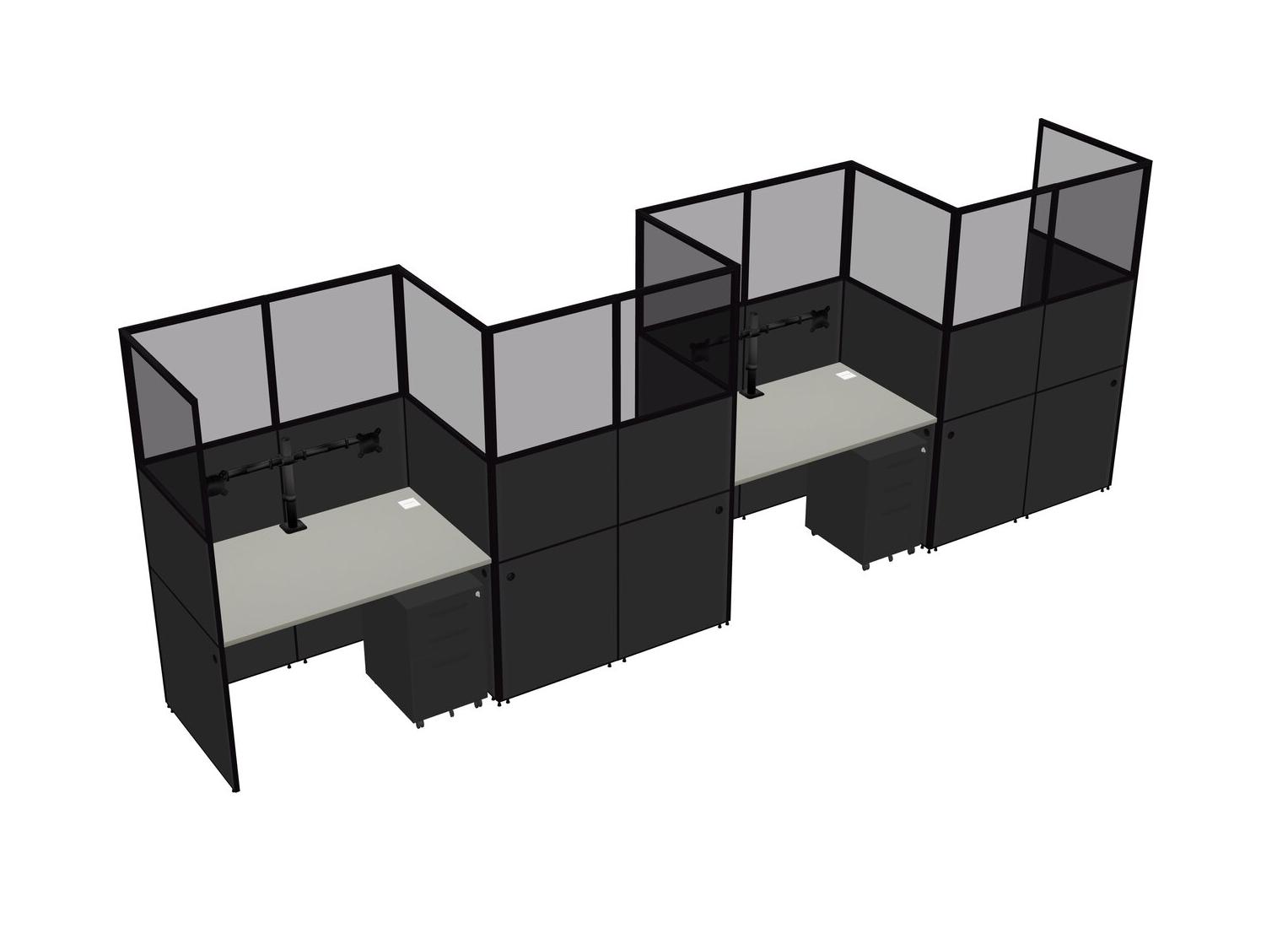 Grey Shadows Rectangular Cubicle Workstations For 4 - Zigzag Formation + Black Metal Mobile Drawers