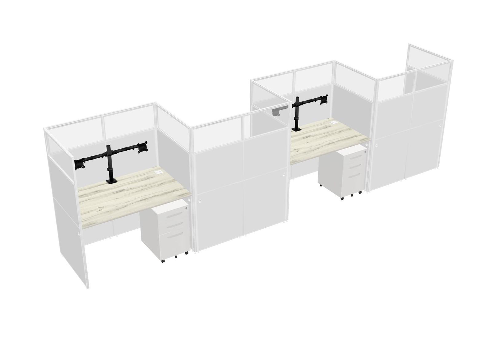 Heinne Holz Rectangular Cubicle Workstations For 4 - Zigzag Formation + White Metal Mobile Drawers