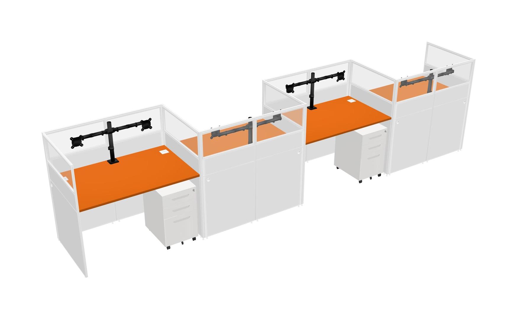 Orange Rectangular Cubicle Workstations For 4 - Zigzag Formation + White Metal Mobile Drawers
