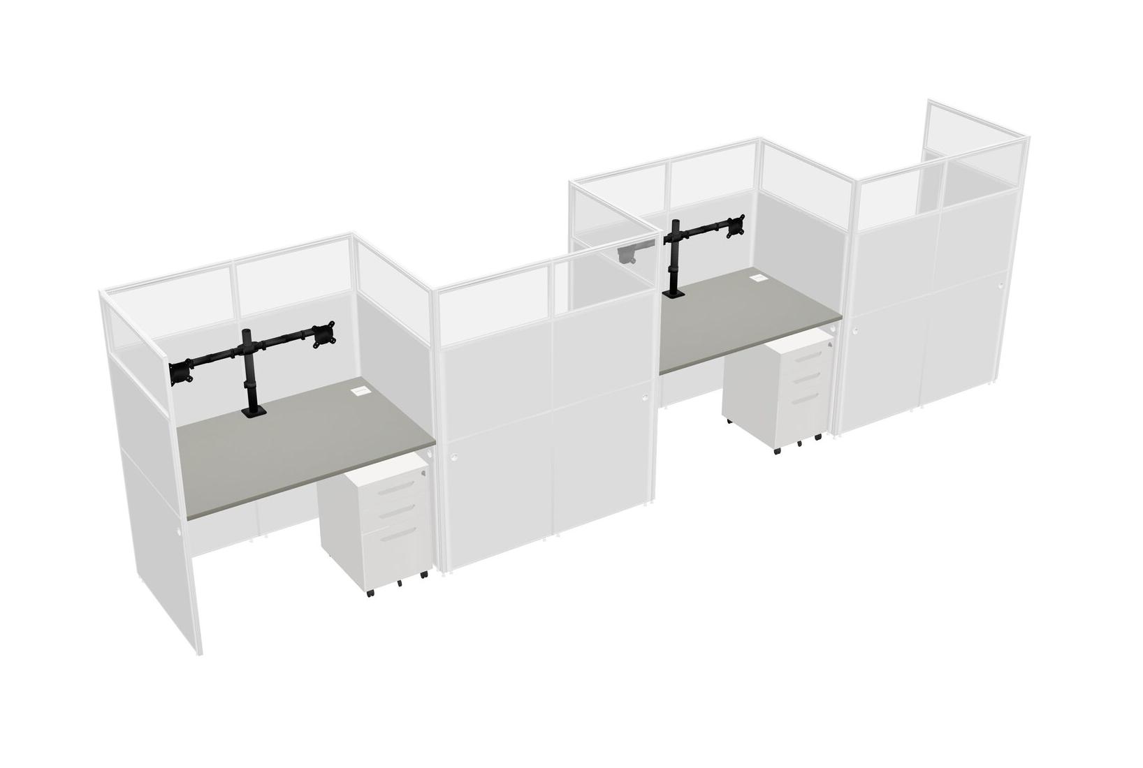 Grey Shadows Rectangular Cubicle Workstations For 4 - Zigzag Formation + White Metal Mobile Drawers