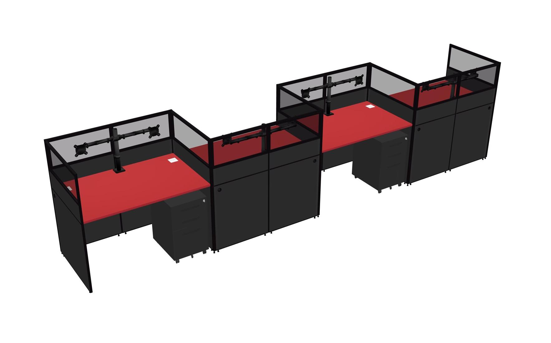 Prism Red Rectangular Cubicle Workstations For 4 - Zigzag Formation + Black Metal Mobile Drawers