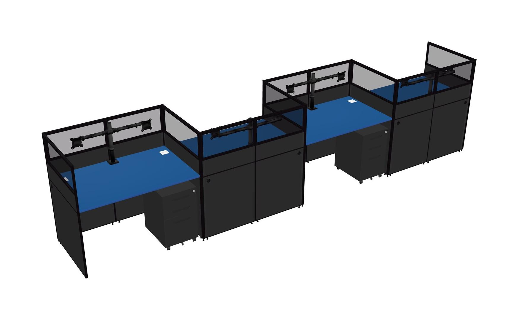 Prism Blue Rectangular Cubicle Workstations For 4 - Zigzag Formation + Black Metal Mobile Drawers