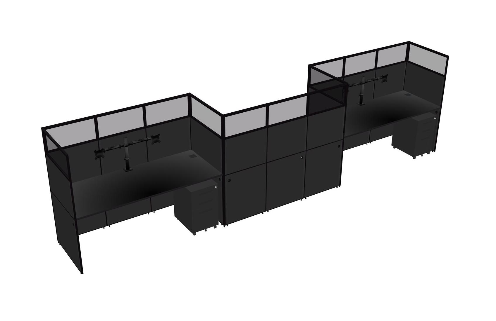 Black Rectangular Cubicle Workstations For 3 - Zigzag Formation + Black Metal Mobile Drawers