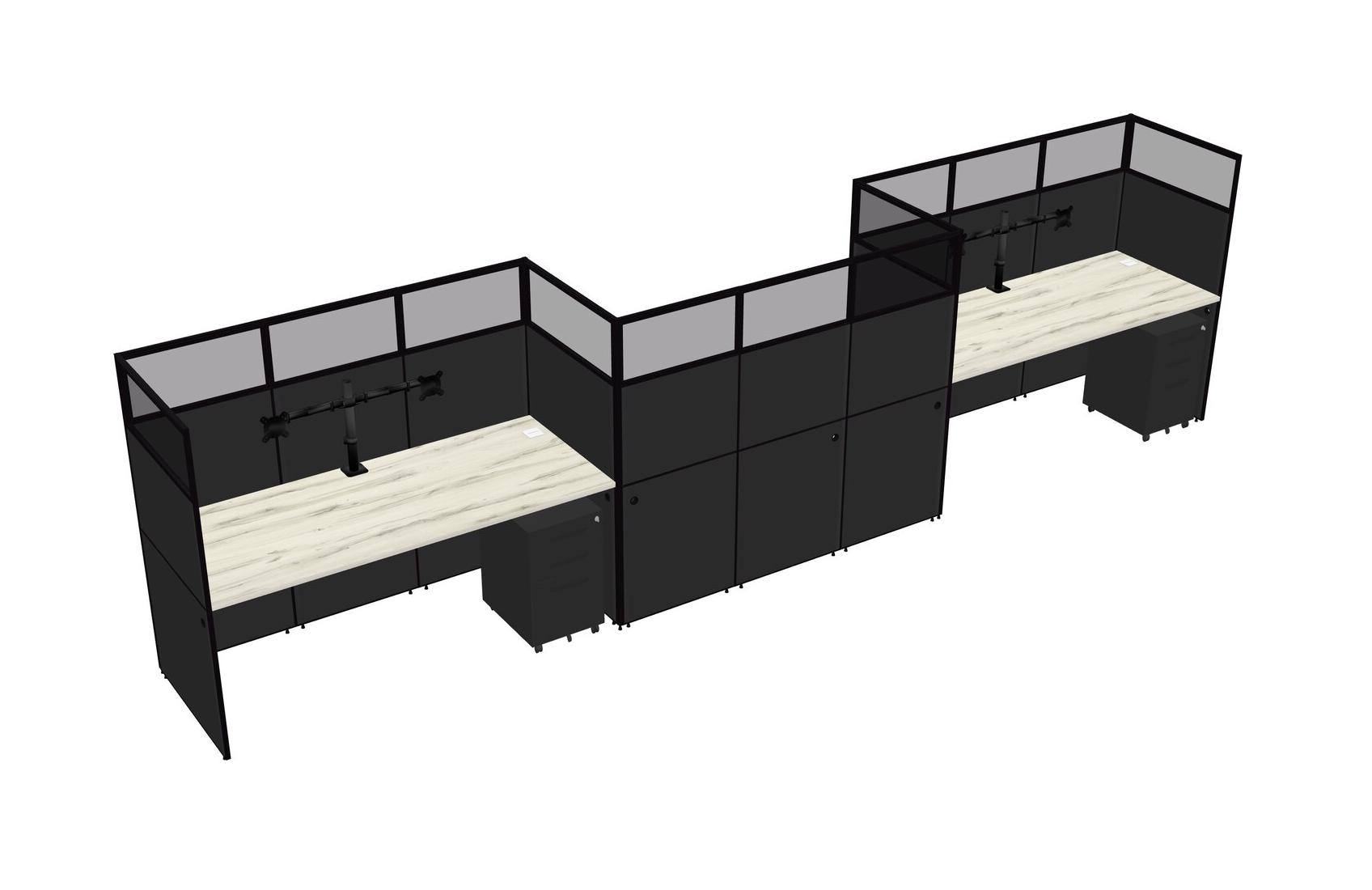 Heinne Holz Rectangular Cubicle Workstations For 3 - Zigzag Formation + Black Metal Mobile Drawers