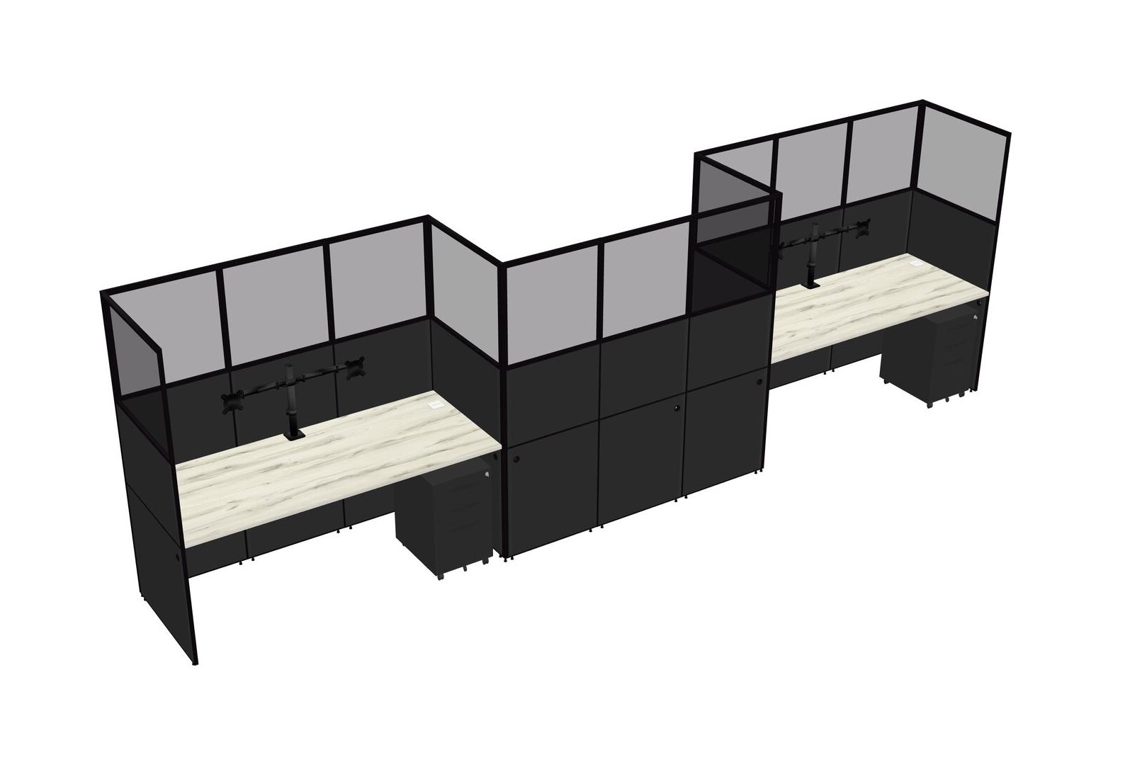 Heinne Holz Rectangular Cubicle Workstations For 3 - Zigzag Formation + Black Metal Mobile Drawers