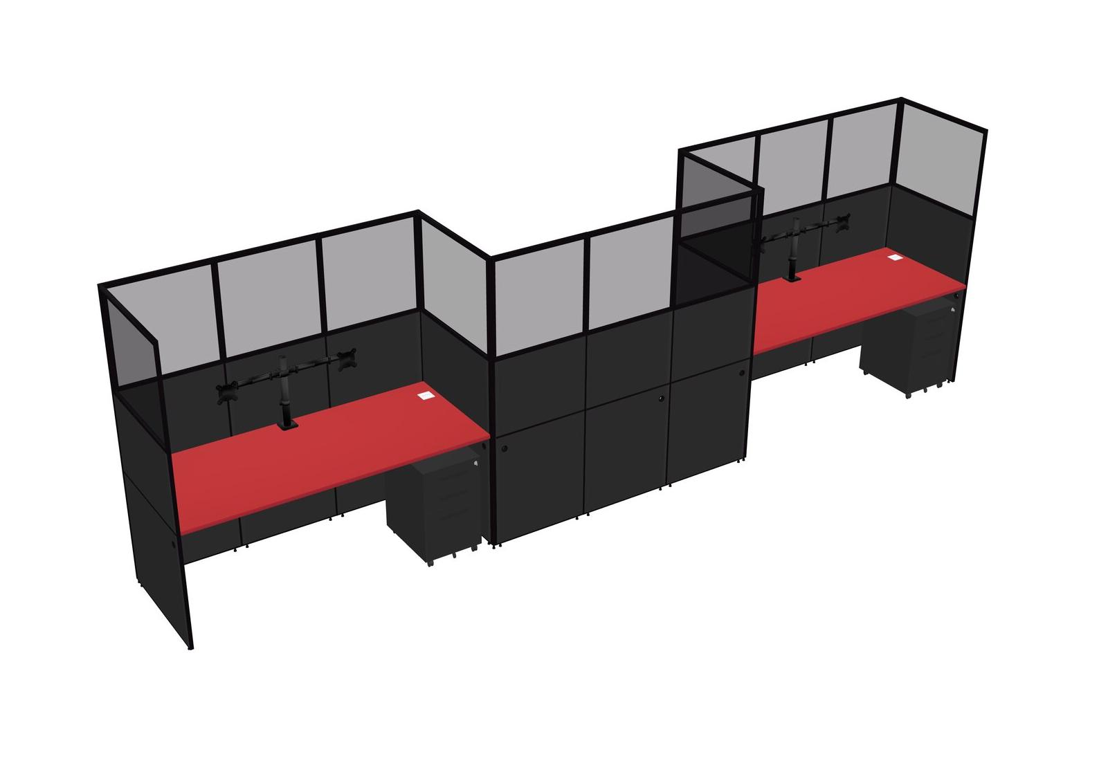 Prism Red Rectangular Cubicle Workstations For 3 - Zigzag Formation + Black Metal Mobile Drawers