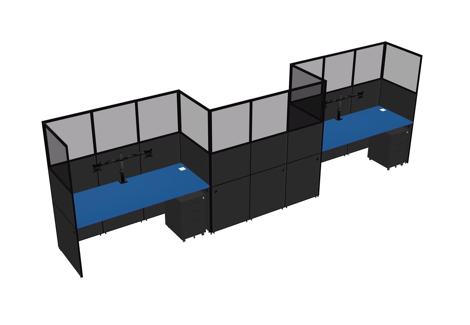 Prism Blue Rectangular Cubicle Workstations For 3 - Zigzag Formation + Black Metal Mobile Drawers