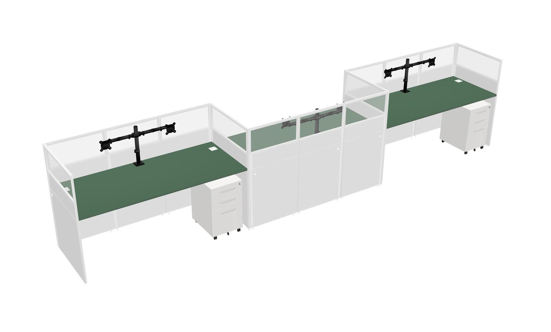 Green Rectangular Cubicle Workstations For 3 - Zigzag Formation + White Metal Mobile Drawers