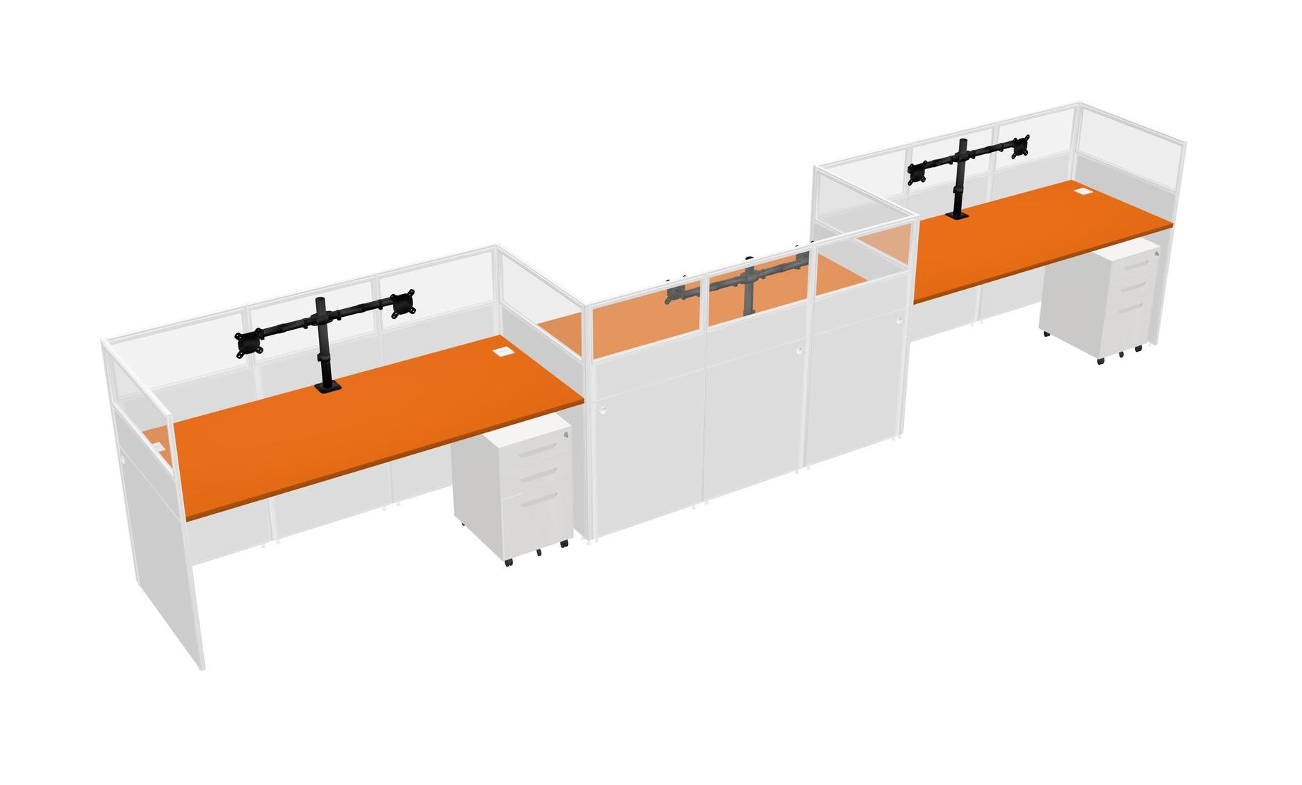 Orange Rectangular Cubicle Workstations For 3 - Zigzag Formation + White Metal Mobile Drawers