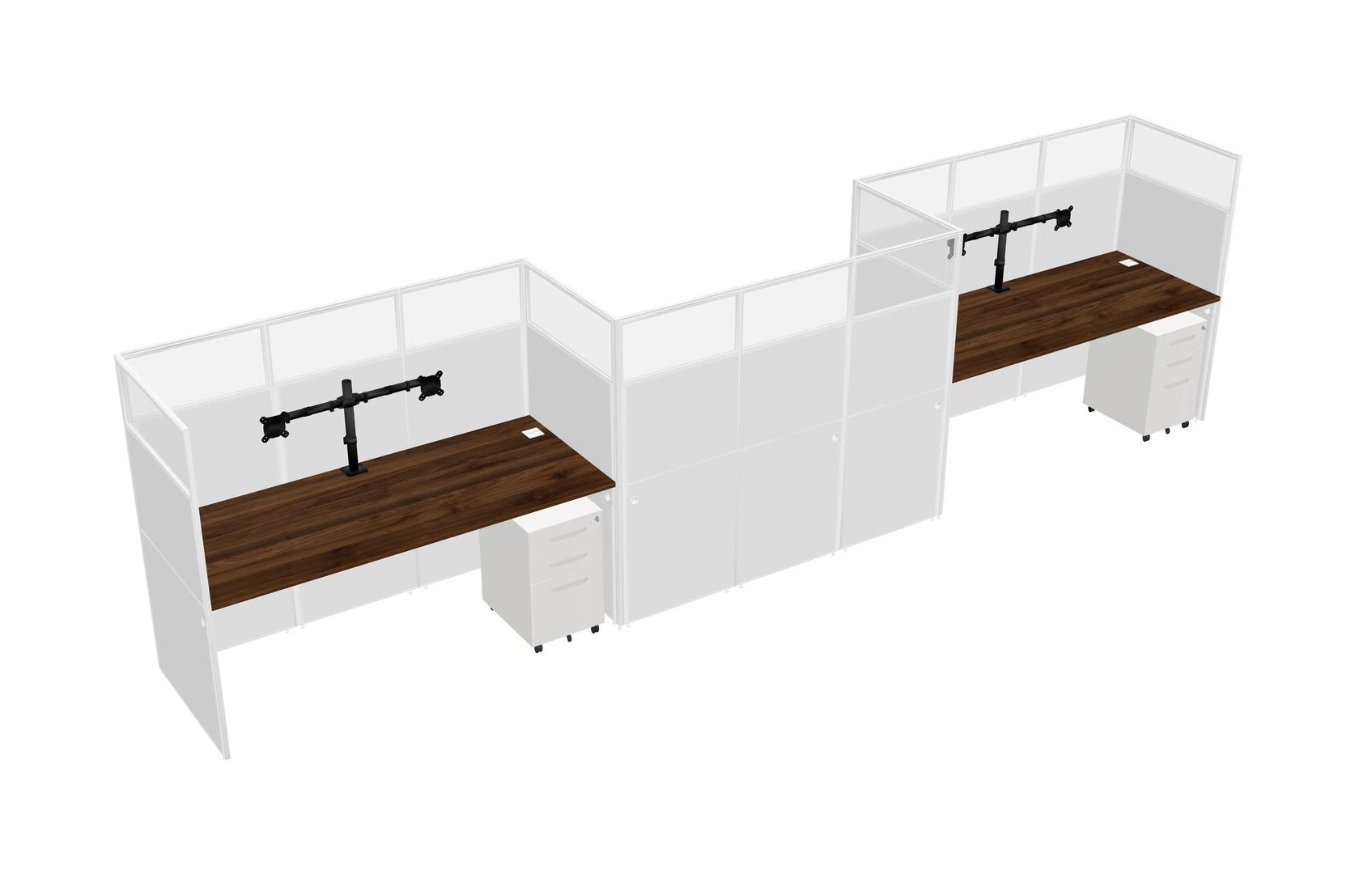 Columbia Walnut Rectangular Cubicle Workstations For 3 - Zigzag Formation + White Metal Mobile Drawers