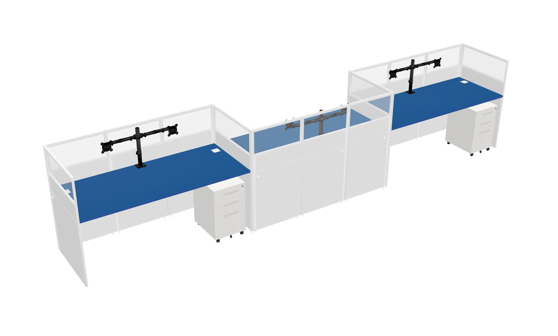 Prism Blue Rectangular Cubicle Workstations For 3 - Zigzag Formation + White Metal Mobile Drawers