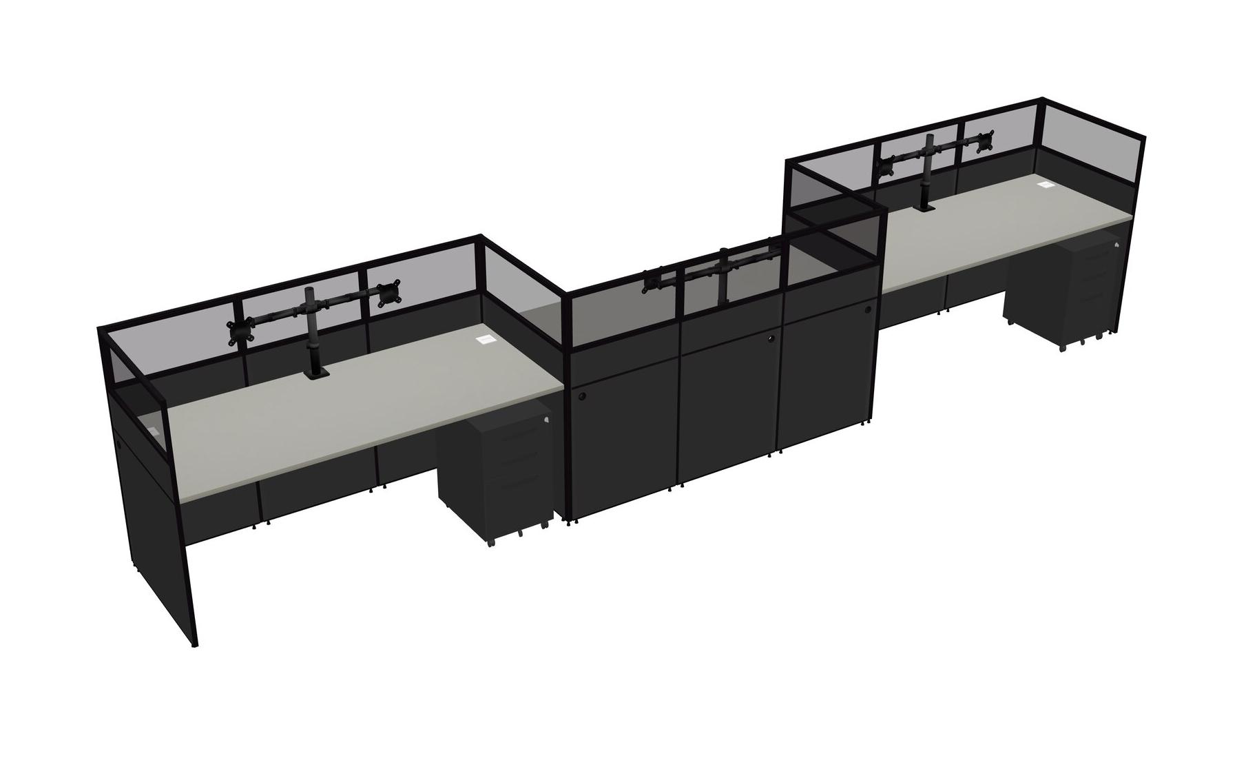 Grey Shadows Rectangular Cubicle Workstations For 3 - Zigzag Formation + Black Metal Mobile Drawers