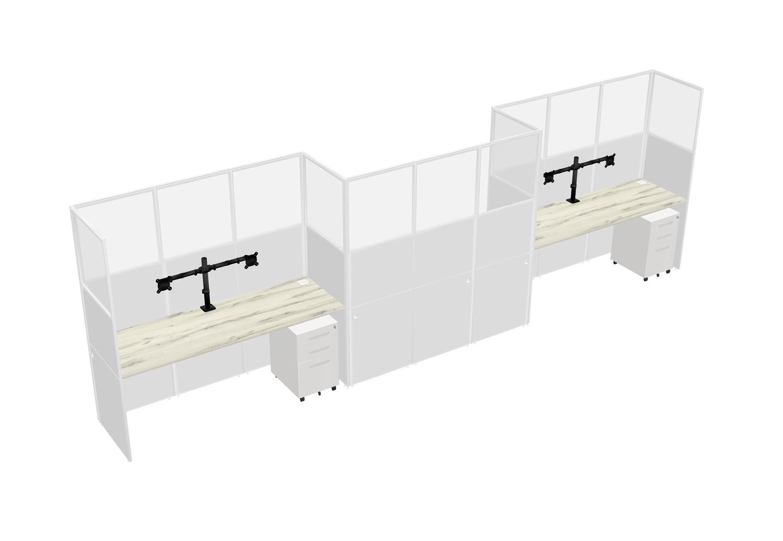 Heinne Holz Rectangular Cubicle Workstations For 3 - Zigzag Formation + White Metal Mobile Drawers