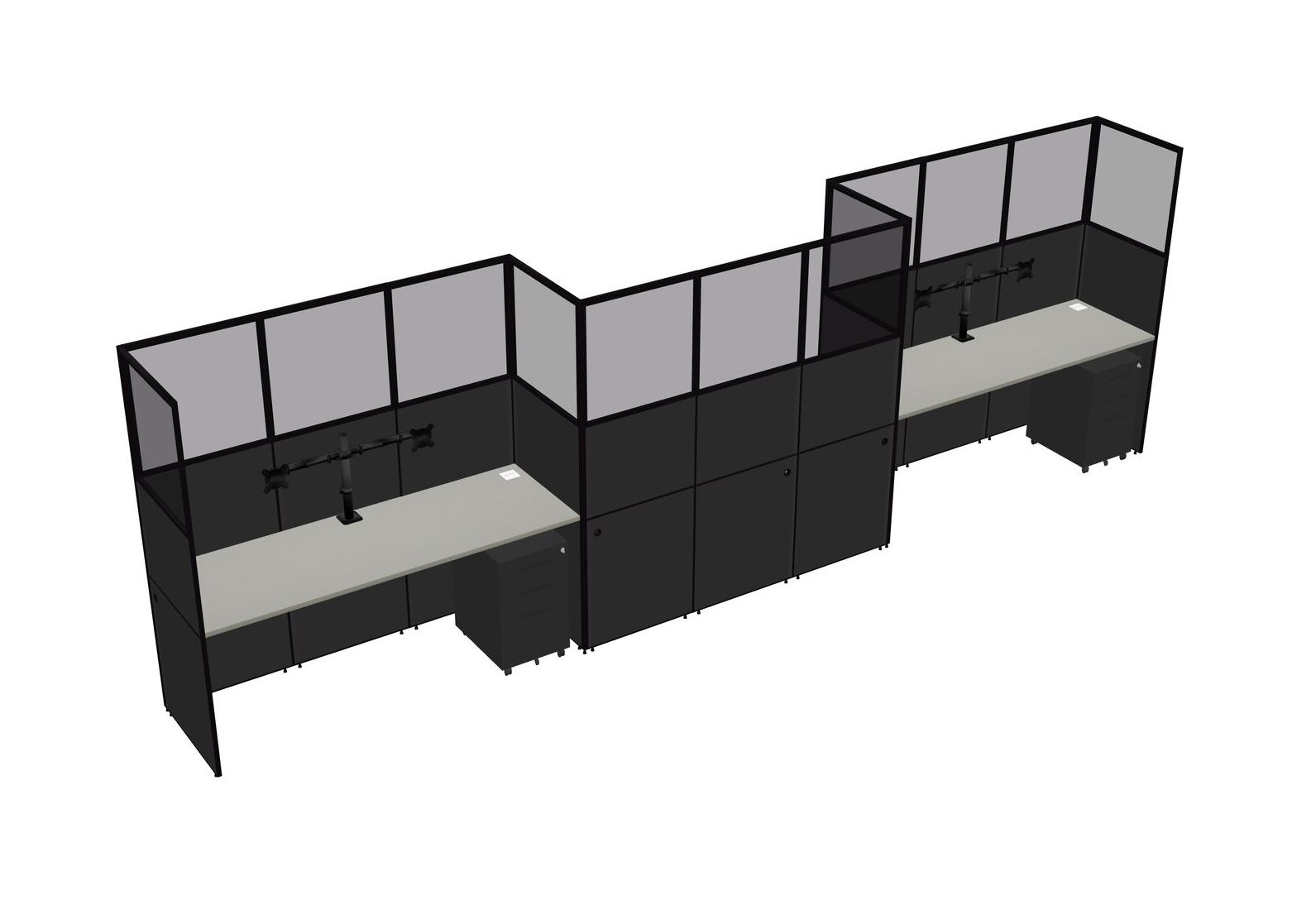 Grey Shadows Rectangular Cubicle Workstations For 3 - Zigzag Formation + Black Metal Mobile Drawers