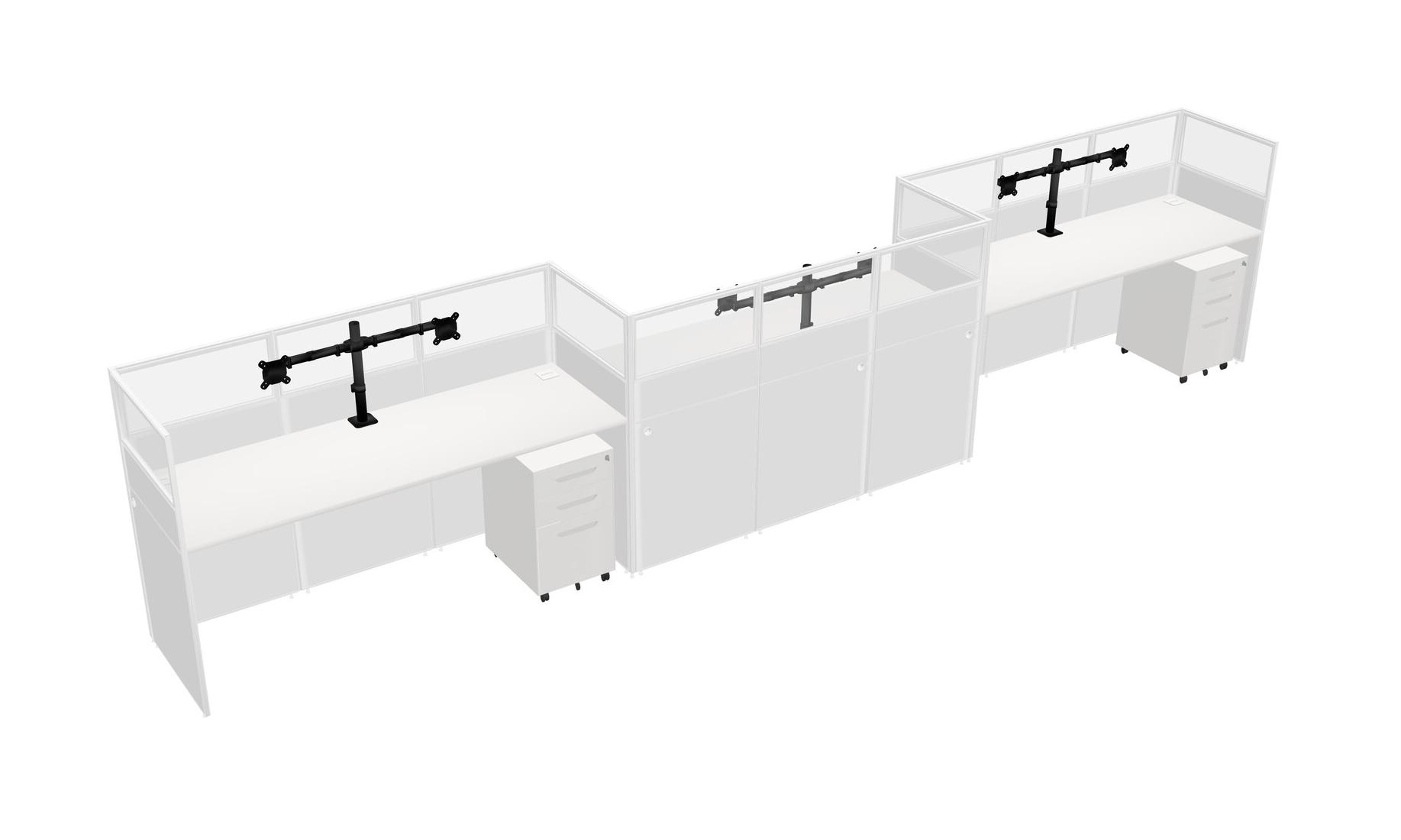 White Rectangular Cubicle Workstations For 3 - Zigzag Formation + White Metal Mobile Drawers